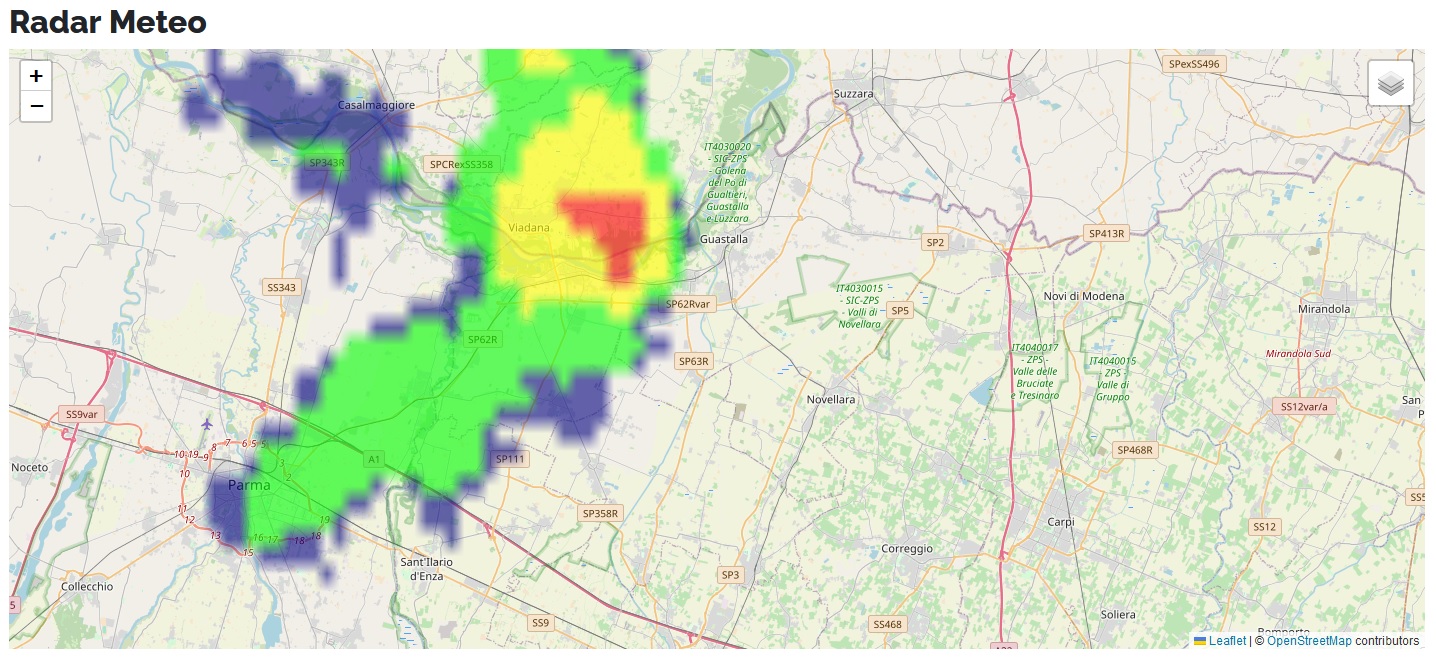 Il sistema piovoso che è sceso dal Lago di Iseo nel bresciano si è spinto fino al Po. Ha interessato il parmense fino alla via Emilia e ciò che ne resta è ancora attivo tra Viadana e Guastalla.