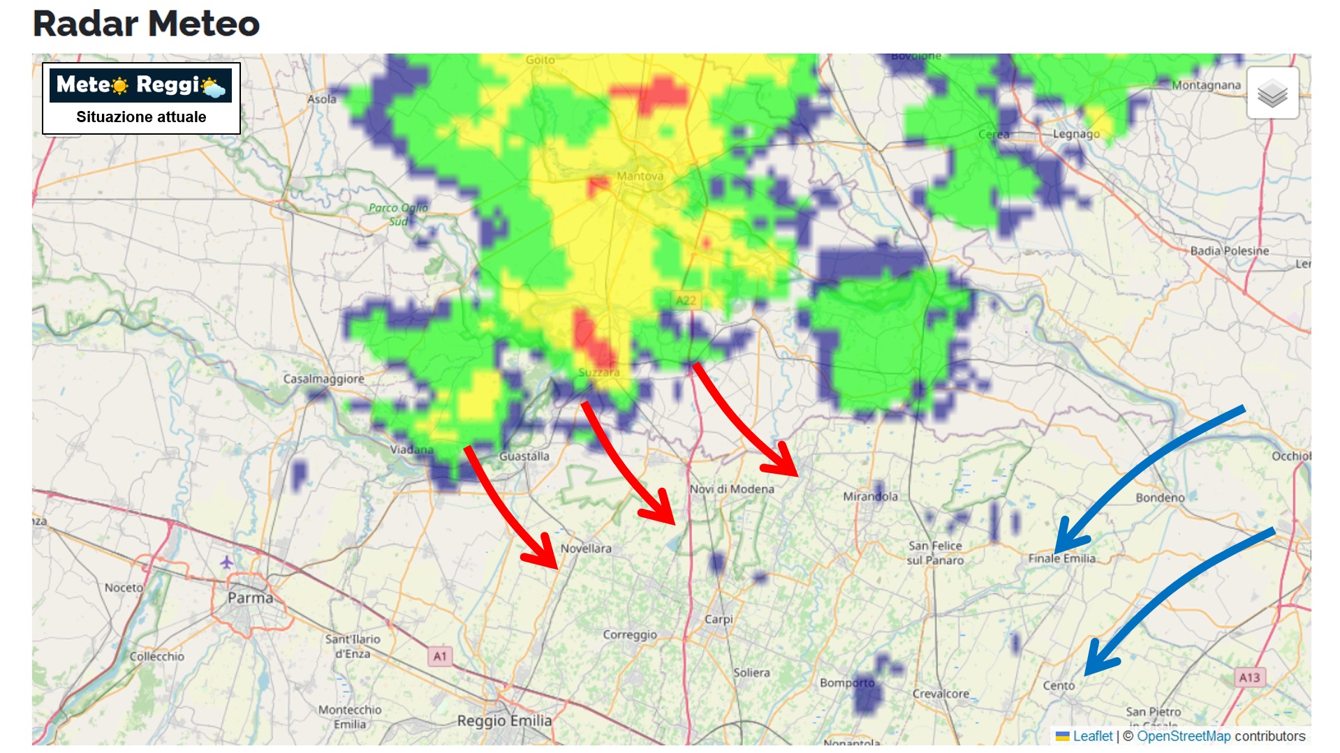 Le due correnti si stanno dando appuntamento sul mantovano e nella nostra Bassa vicino al Po. Da questo incontro stanno nascendo le prime precipitazioni piovose che avanzeranno progressivamente verso la via Emilia.