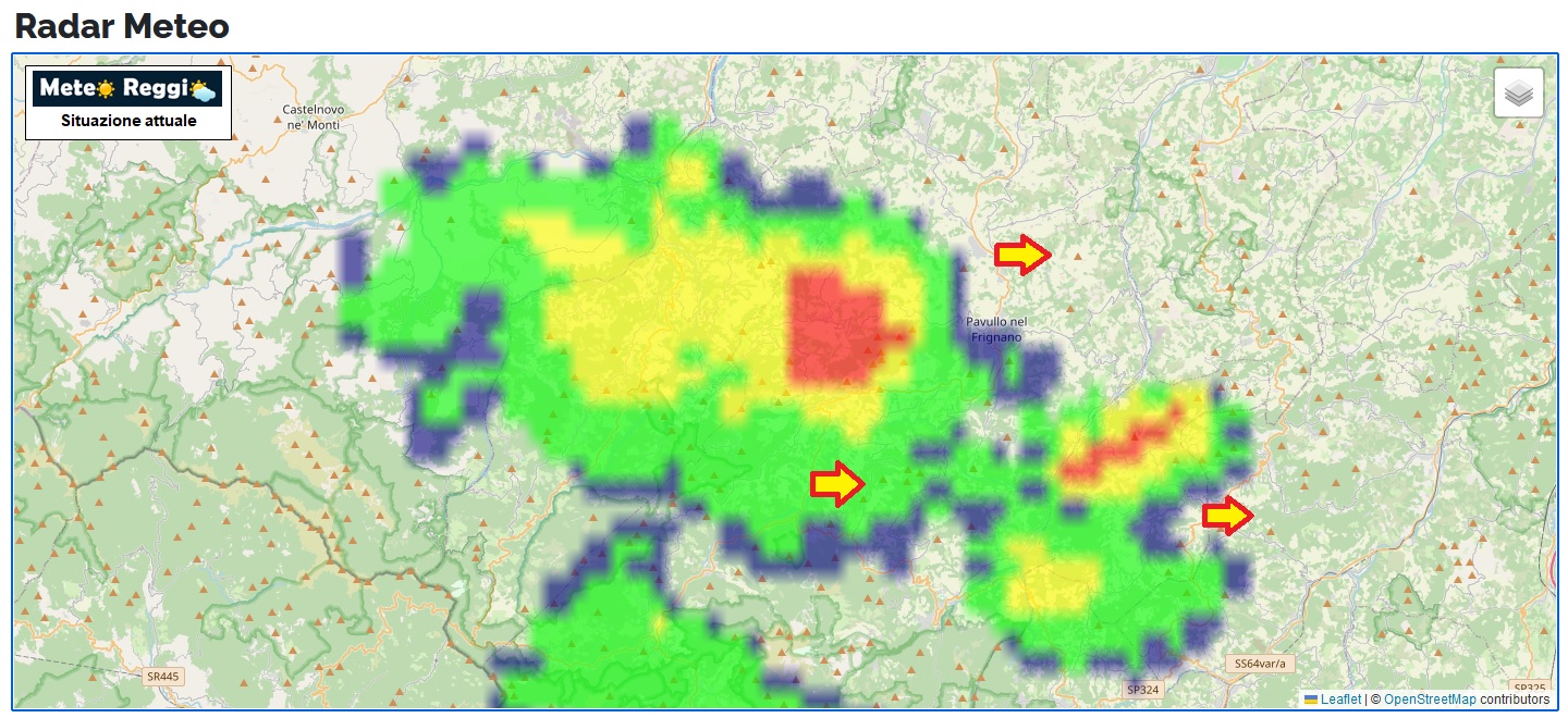Abbiamo avuto due rapidi momenti di piogge particolarmente intense con possibilità di piccola grandie nella zona delle fonti di Poiano e poco dopo nella zona tra Toano e Civago nella valle del Dolo.