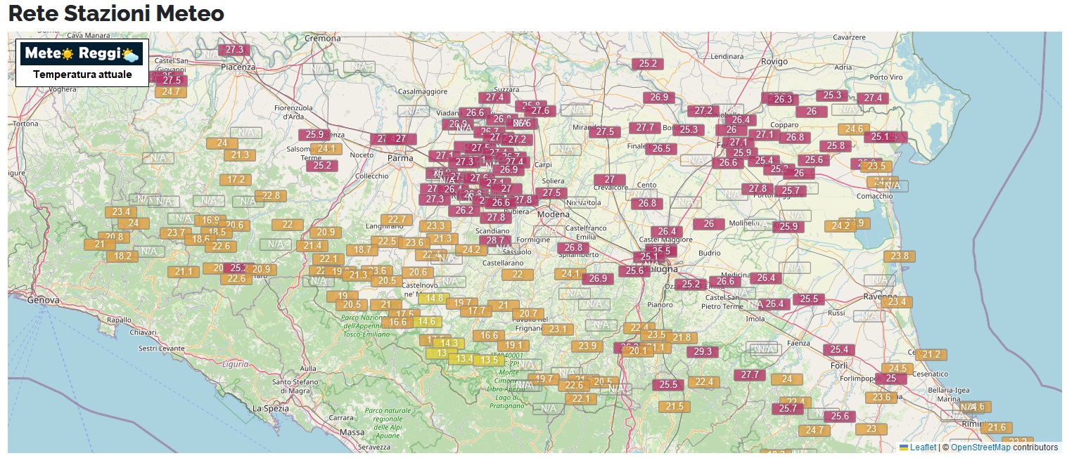 Sul resto della Pianura domina il caldo con punte di 29°C nella comprensorio ceramico a Scandiano e Castellarano, 25°C fino all'altezza di Baiso.