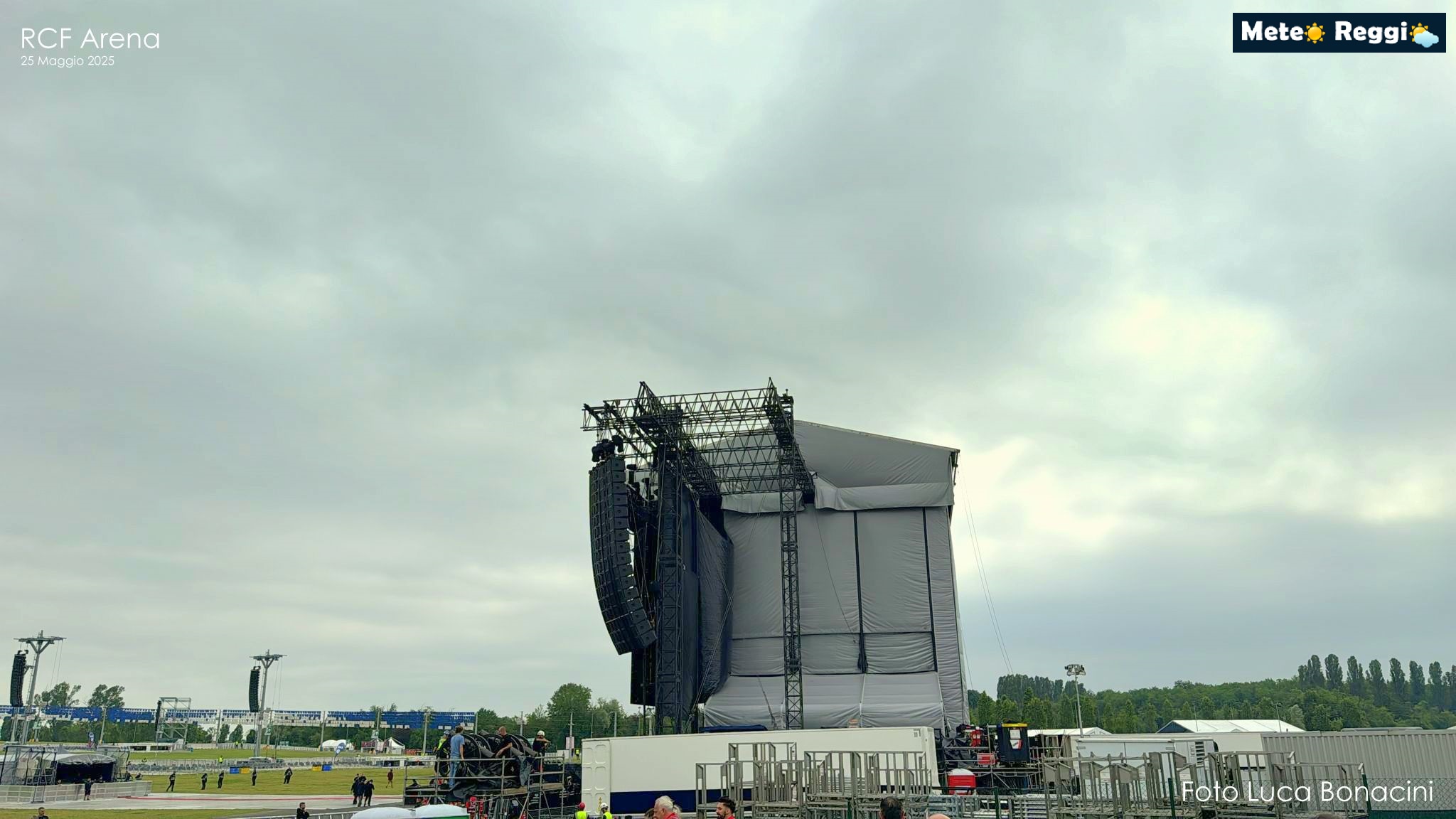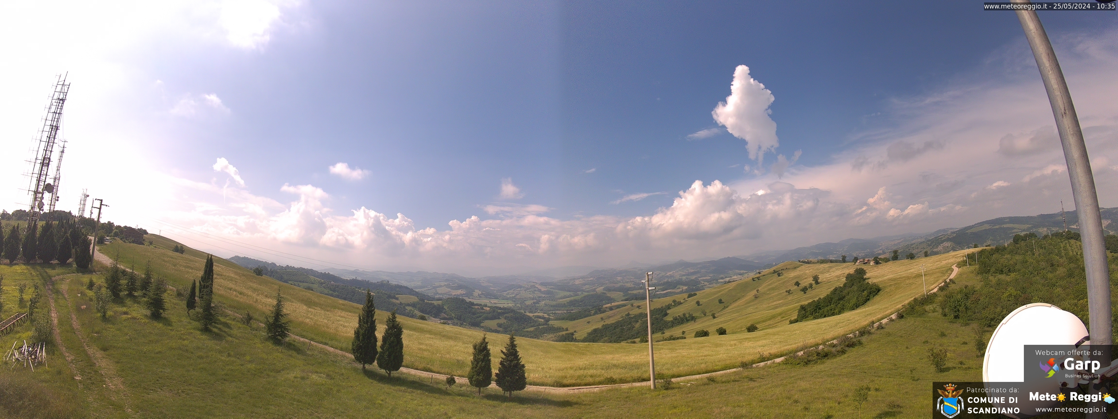 Attualmente il cielo sull'RCF Arena è piuttosto grigio con pochi scampoli di cielo azzurro, in contrapposizione al Sole che domina sulla Pedecollinare e prima Collina. In Collina, però, stanno prendendo forma i primi "abbozzi" di nuvolosità torreggiante.