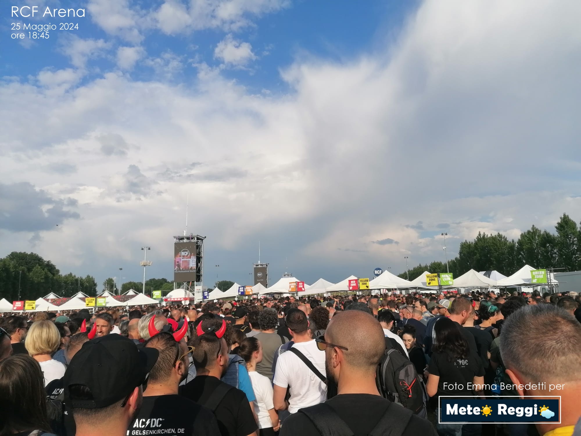 Cielo sereno, quindi, sull'RCF Arena dove il pubblico continua ad affluire. Traffico molto sostenuto lungo tutta la zona che circonda il Campovolo, ma tutto scorre senza problemi.