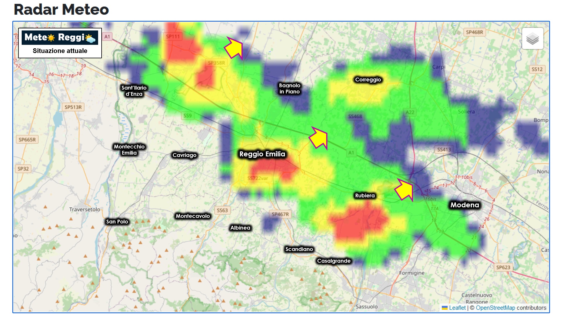 Una linea che va da Gattatico a Rubiera, con Reggio Emilia nel mezzo, ma non si segnalano celle grandinigene.