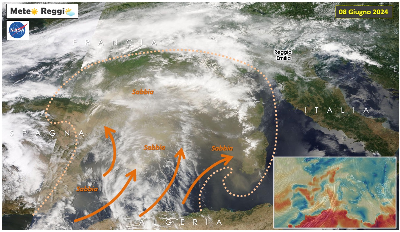 A parte questo, il vortice anticiclonico africano sta scagliando verso le coste mediterranee della Spagna, della Francia e sul nord-Italia, un gran volume di polvere del Sahara. Alcuni di voi l'avranno già vista adagiata sulle carrozzerie delle macchine dal momento che qualche "goccia isterica" di pioggia è caduta qua e là.