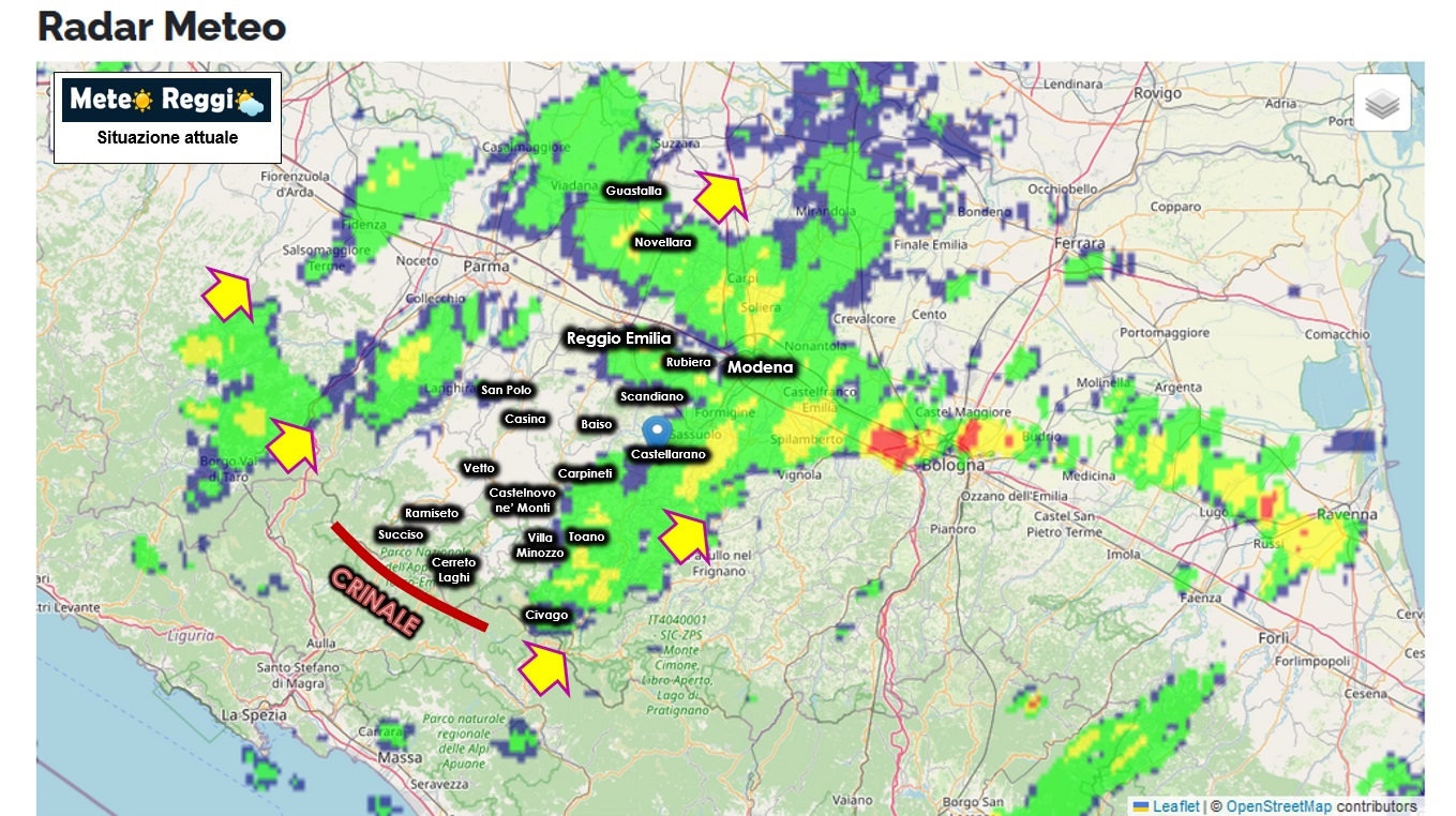 Tutto ancora "abbastanza" tranquillo sul reggiano nonostante i tuoni che echeggiavano in queste ore sul nostro Appennino. Il Crinale continua a fare il suo lavoro e ci offre la sua protezione tenendo in ombra gran parte della Provincia, soprattutto la Pedecollinare e le valli di Enza e Crostolo.