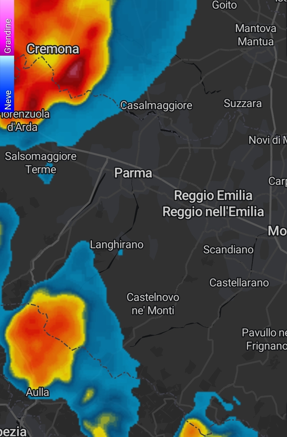 Qui una cella piuttosto attiva arriva fino alle falde dell'Enza e sul fianco occidentale dell'Alpe di Succiso. Il Gigante prova a resistere, ma qualcosa di questa perturbazione potrebbe arrivare ad interessarci nelle prossime ore.