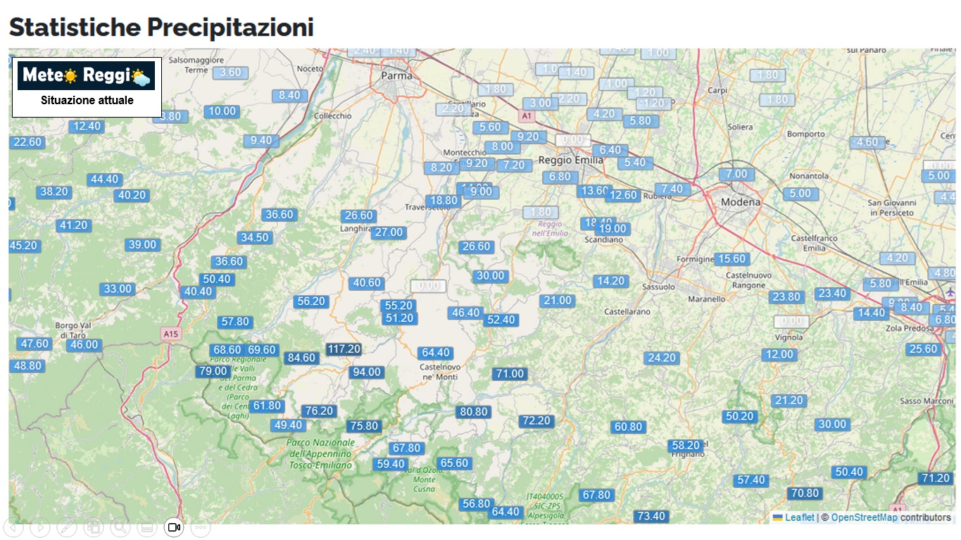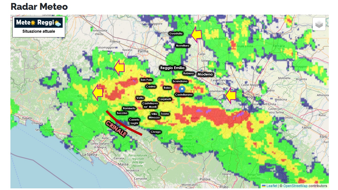 Vento forte soffia da est e accompagna con le sue raffiche di oltre 60 Km/h delle piogge a dir poco battenti. Gli accumuli sul nostro Appennino superano i 100 mm a Ramiseto e i 90 tra Toano e Villa Minozzo dove sono già in atto delle criticità dovute al ruscellamento delle piogge meteoriche. Il terreno ormai si presenta saturo e a breve vedremo riflesso nei corsi d'acqua questi acquazzoni in atto.