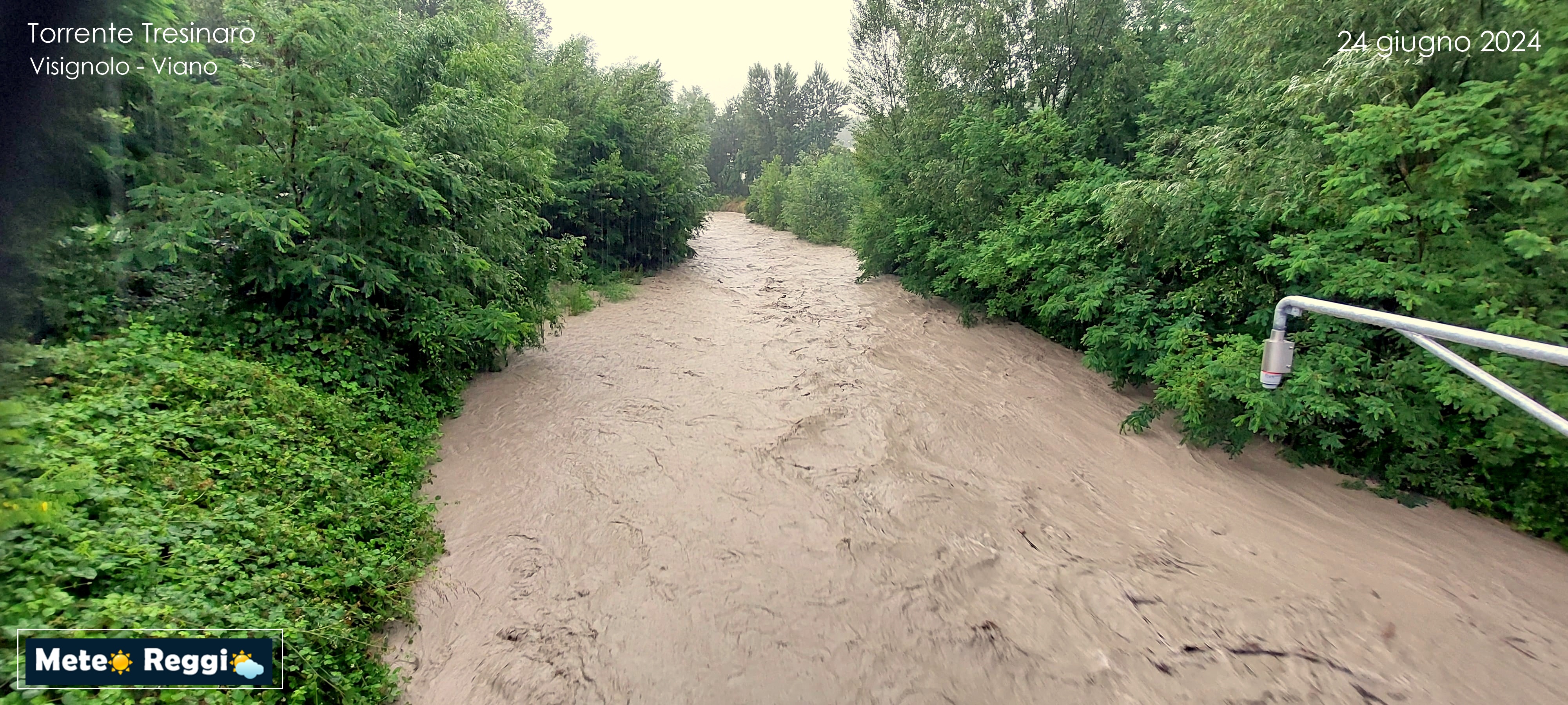Cresce anche il Crostolo, sebbene meno esposto rispetto al Tresinaro e ancora sotto soglia 1 (per il momento) a Puianello.