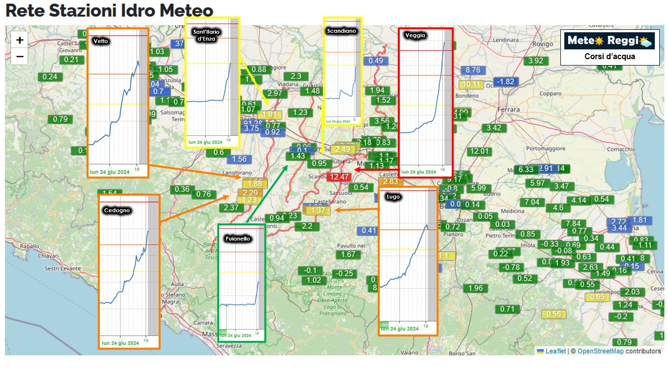 Il quadro è peggiorato dall'ultimo aggiornamento, le forti piogge cadute in Collina si sono riversate nei corsi d'acqua. Il fiume Secchia è cresciuto improvvisamente fino a superare soglia 3 a la Veggia a causa delle forti piogge che hanno interessato il tratto tra Lugo e Roteglia.