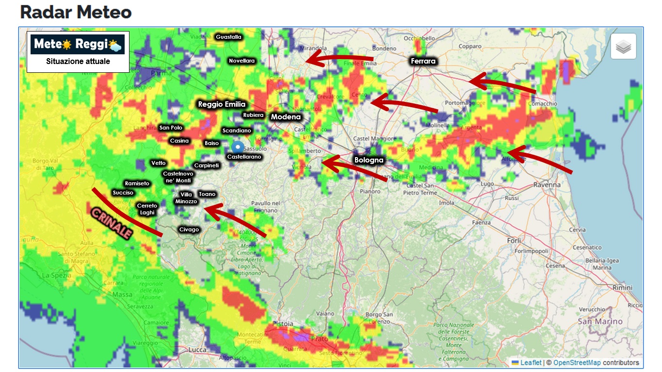 Gli occhi sono ancora una volta puntati verso est perchè da lì sta avanzando minaccioso un nuovo fronte temporalesco. Un fronte che potrebbe colpire nuovamente la Collina reggiana e buona parte della Pianura. Pianura che in questi minuti vede forti acquazzoni tra Correggio e Reggio Emilia.