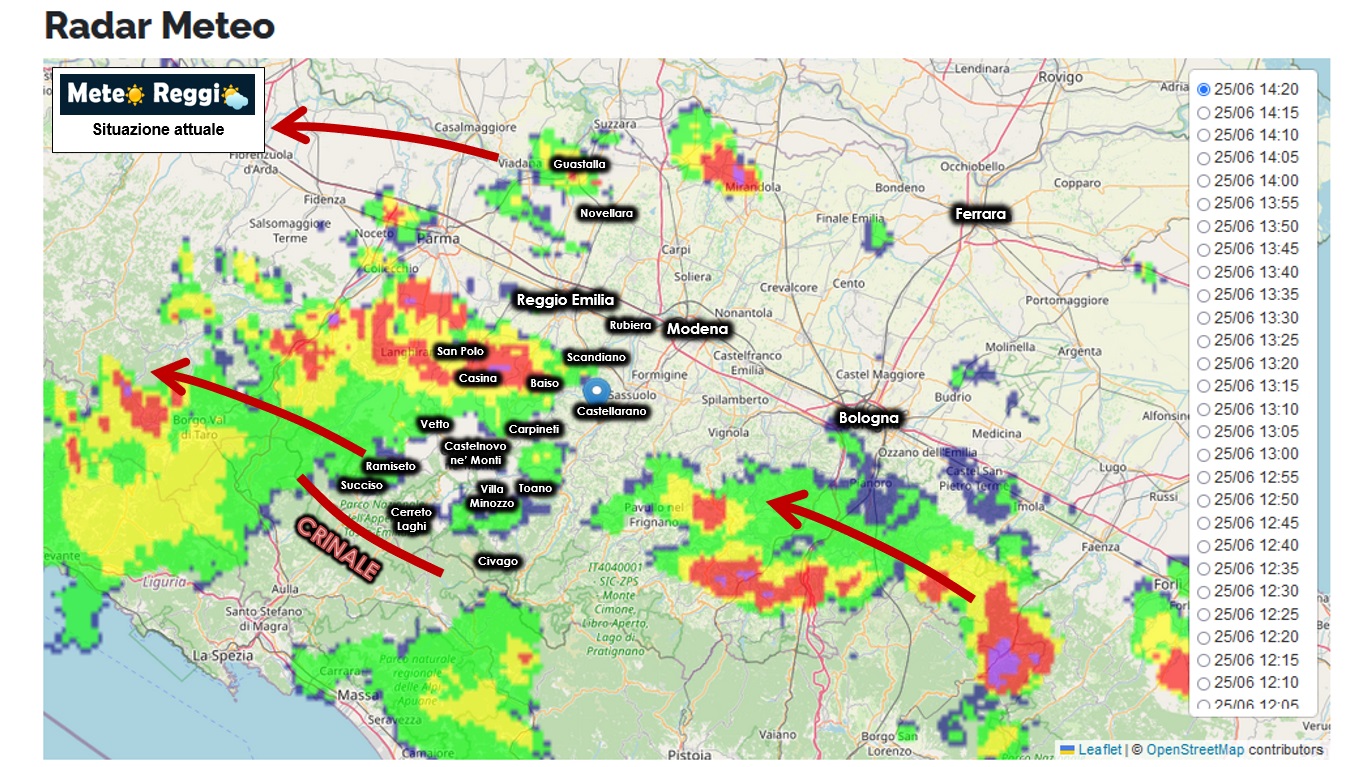 Una linea temporalesca ha preso forma sullo spartiacque tra Crostolo e Tresinaro ed ha proseguito verso l'Enza ed il parmense.