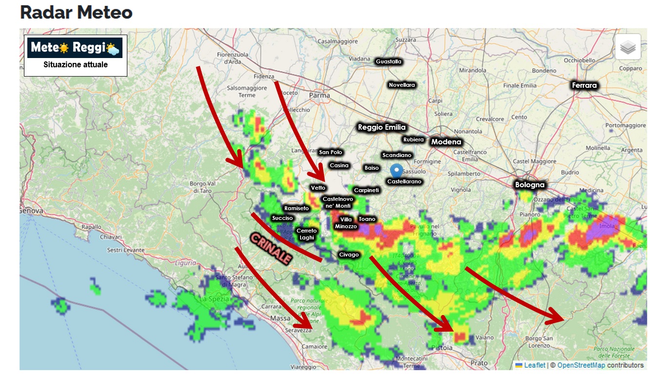 Attualmente la linea interessa i 3 Comuni di Toano, Villa Minozzo e Ventasso. La valle del Secchia sembra proprio fare da confine tra la Collina dove domina il Sole e la Montagna preda della pioggia. Al momento parliamo di una decina o poco meno di millimetri che si sommano agli oltre 150 caduti fino a ieri.