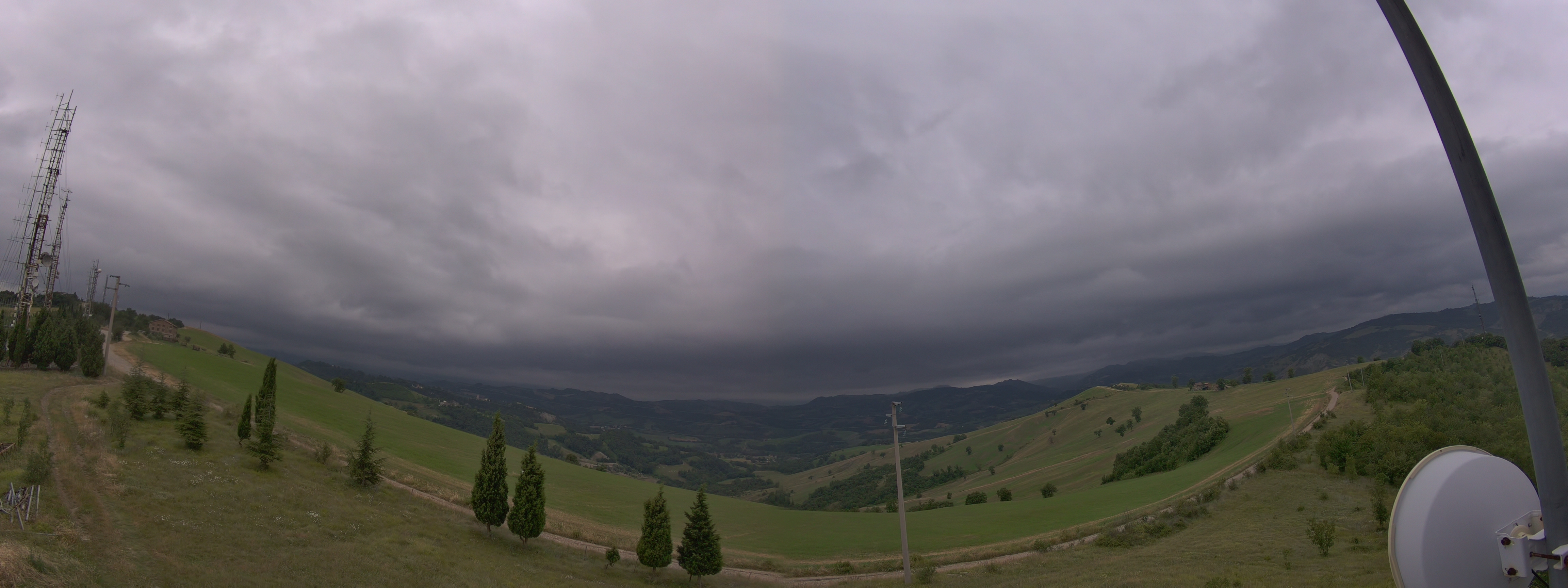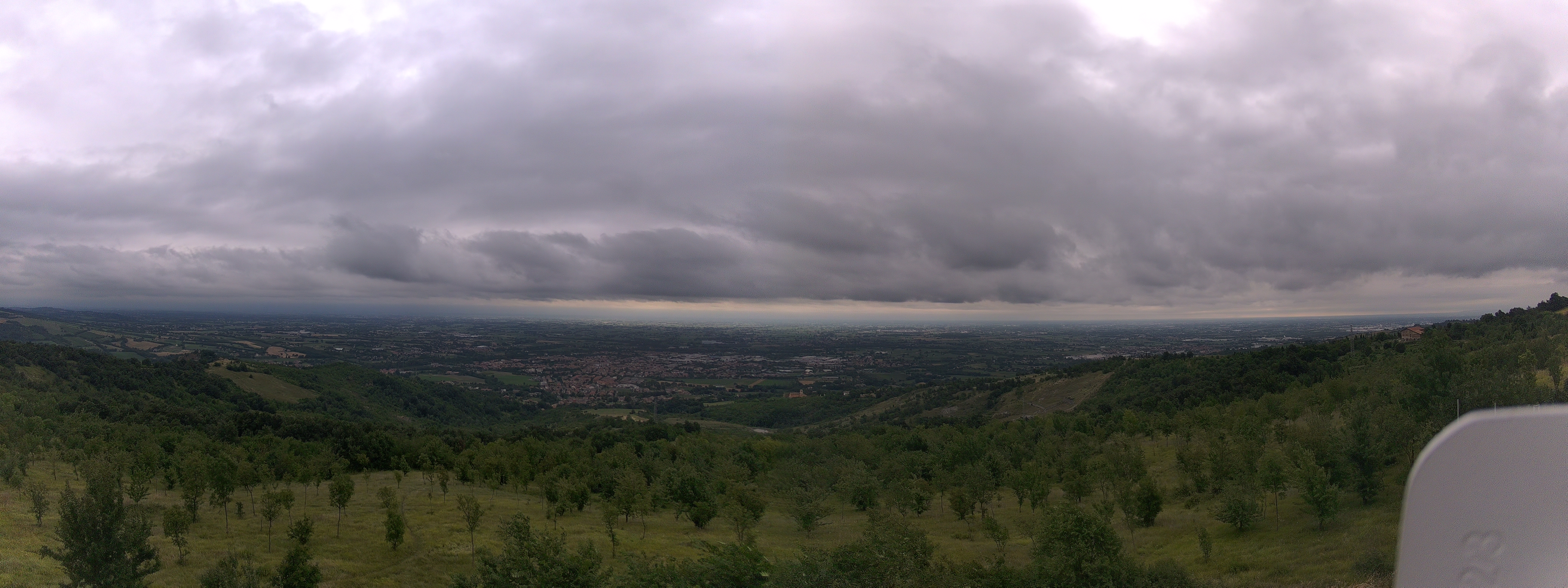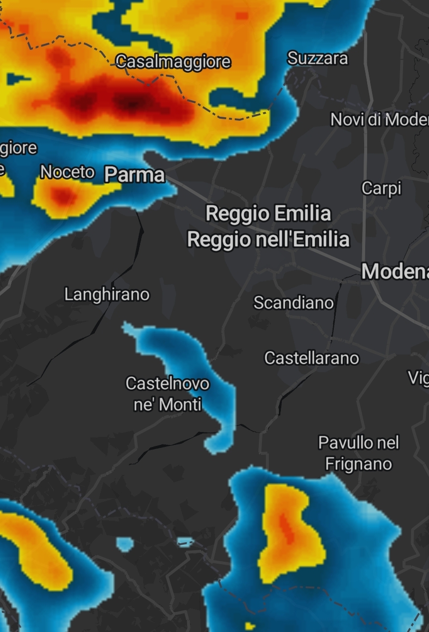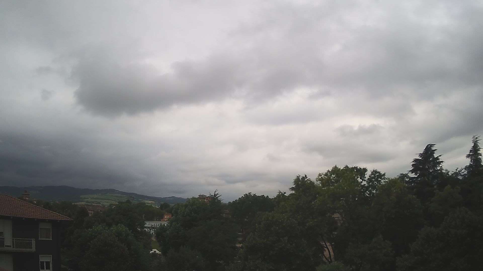 Cielo cupo e minaccioso su tutto il reggiano, al momento i temporali hanno risparmiato l'Appennino e le piogge sono in ritardo sul tabellino di marcia. Questione di poco, però, perché da occidente un muro di pioggia sta avanzando.