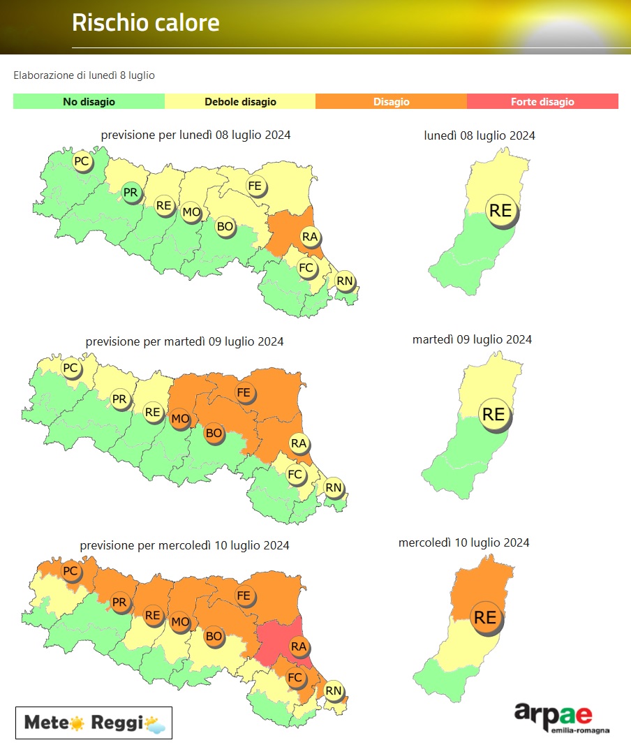 Ma sarà da mercoledì 10 che il disagio inizierà a farsi più prepotente e percettibile anche dai soggetti meno sensibili. Debole disagio anche sulle zone collinari dove almeno avremo un po' di ventilazione a regime di brezza.
