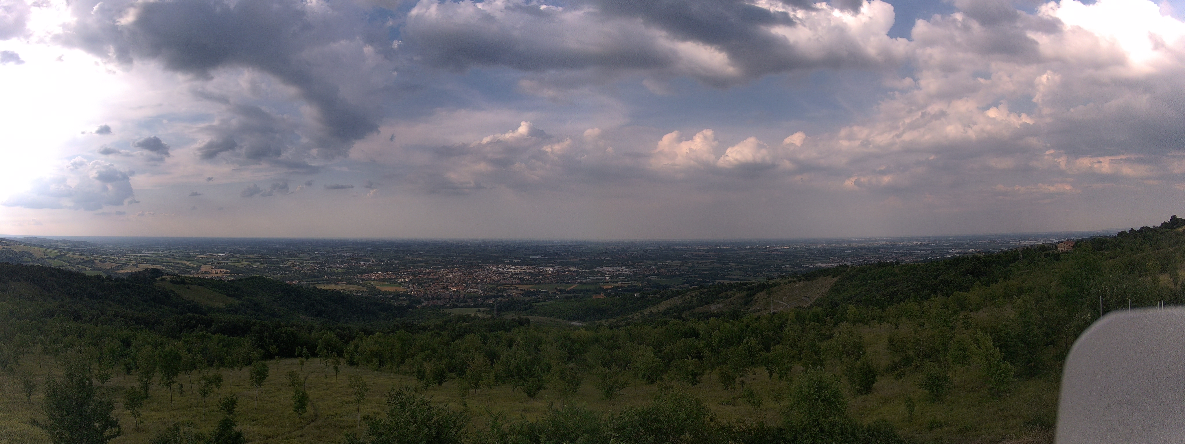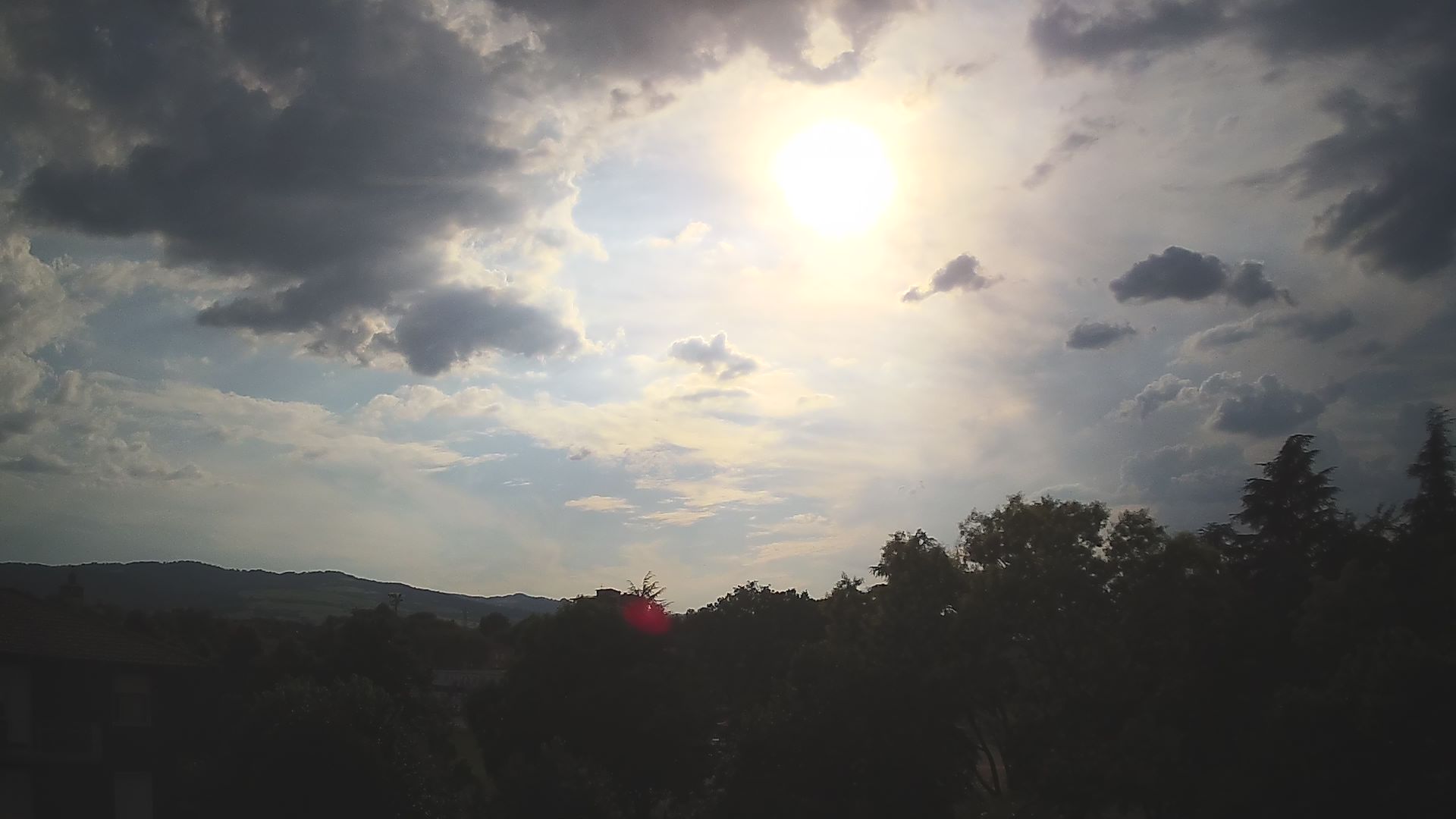 Nella seconda metà del pomeriggio delle grandi nuvole cumuliformi hanno proiettato le loro ombre e portato ad uno modesto calo termico (o almeno ad arrestare la corsa di diverse stazioni a sud della via Emilia). Ad esempio, a Scandiano, si è passati in una decina di minuti da 35,8°C a 35°C netti.