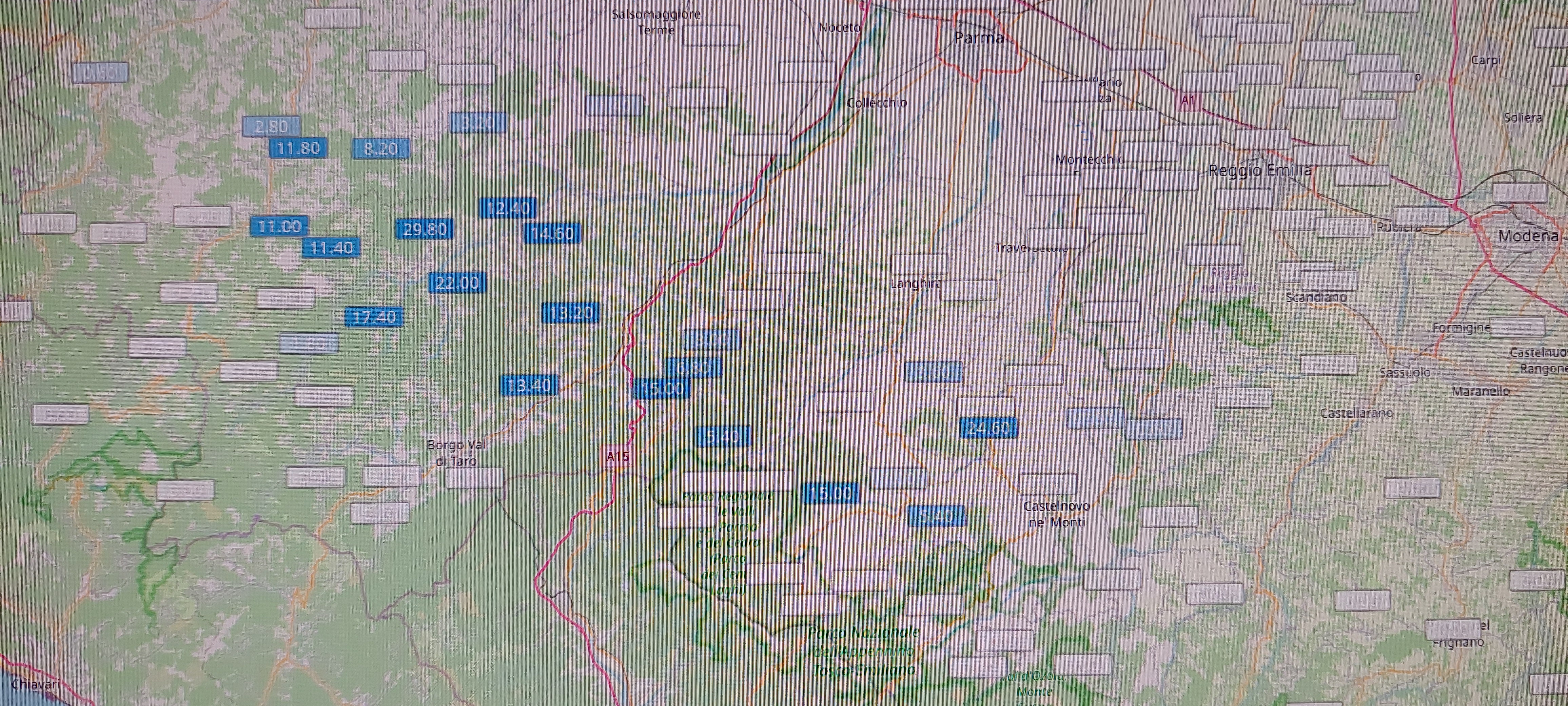 Tutto il sistema si sta spostando verso il modenese, ma altre piogge sono attive sul parmense e potrebbero raggiungerci, anche se il tutto potrebbe estinguersi prima poiché molta energia è stata consumata dal temporale che lo ha preceduto.