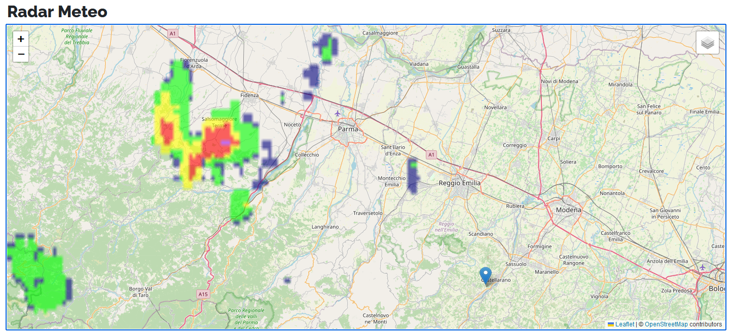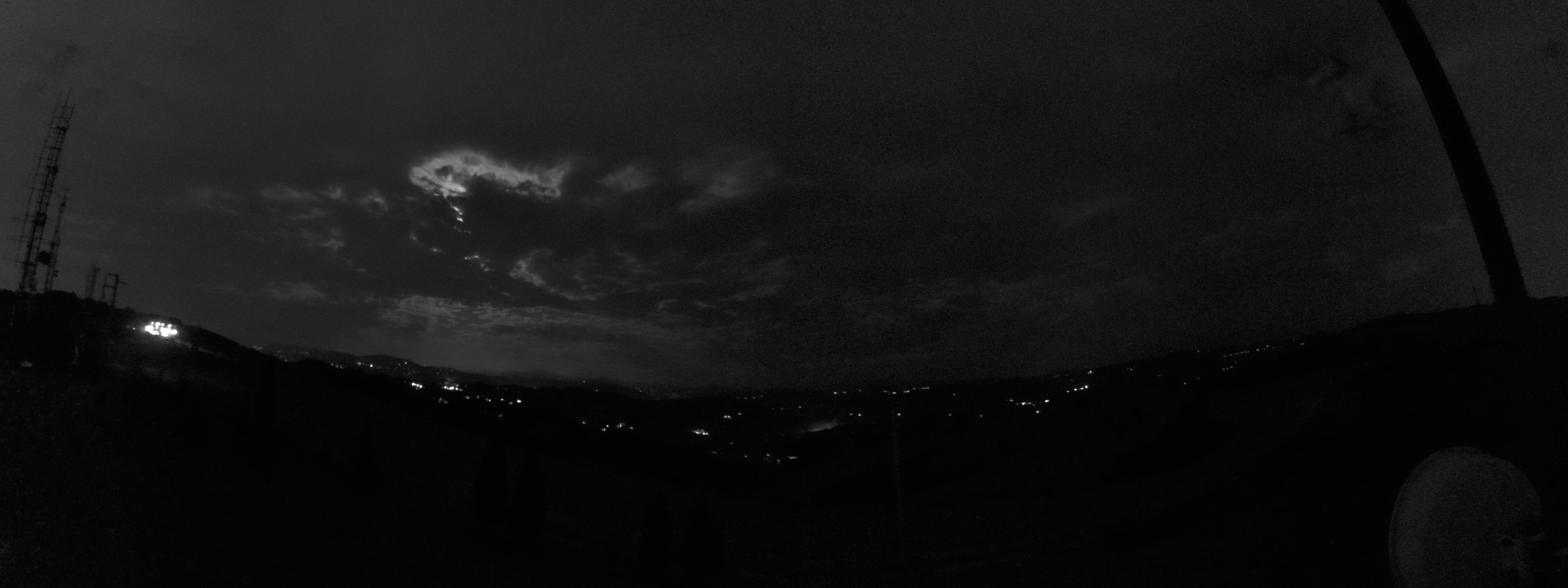 Il cielo come da programma ha iniziato ad accendersi di lampi con l'arrivo del buio. Diverse celle sono transitate a nord del fiume Po e una è in via di sviluppo ad ovest in territorio parmense. Da circa un oretta, infatti, si sta sviluppando un Cumulonembo che ha riversato molta pioggia sulle colline di Salsomaggiore Terme.