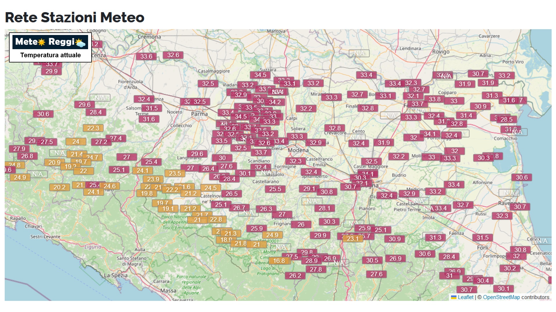 Escursione termica importante sul reggiano, quindi, con i 34°C della Pianura che si contrappongono ai 20°/21°C della Montagna.