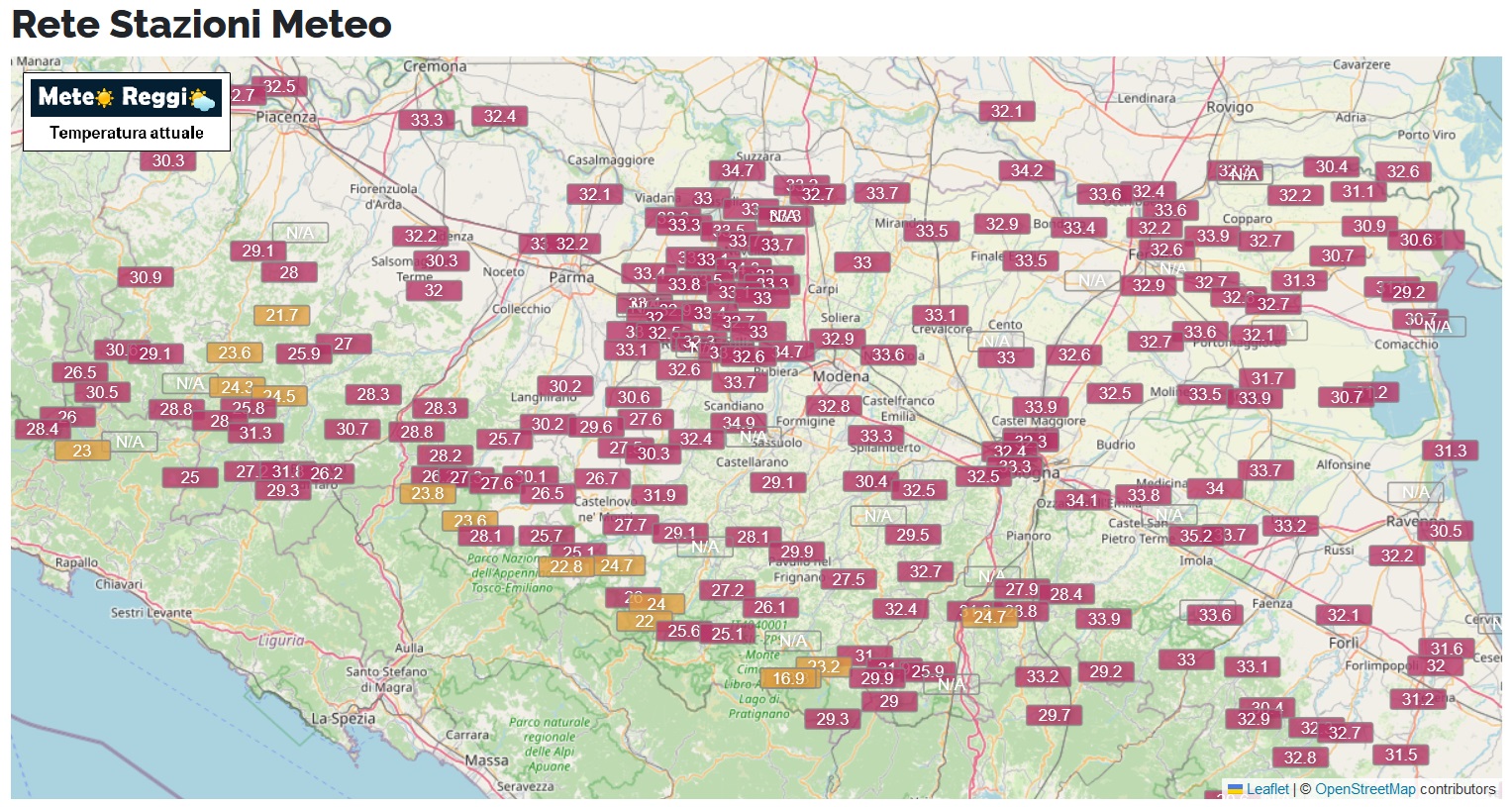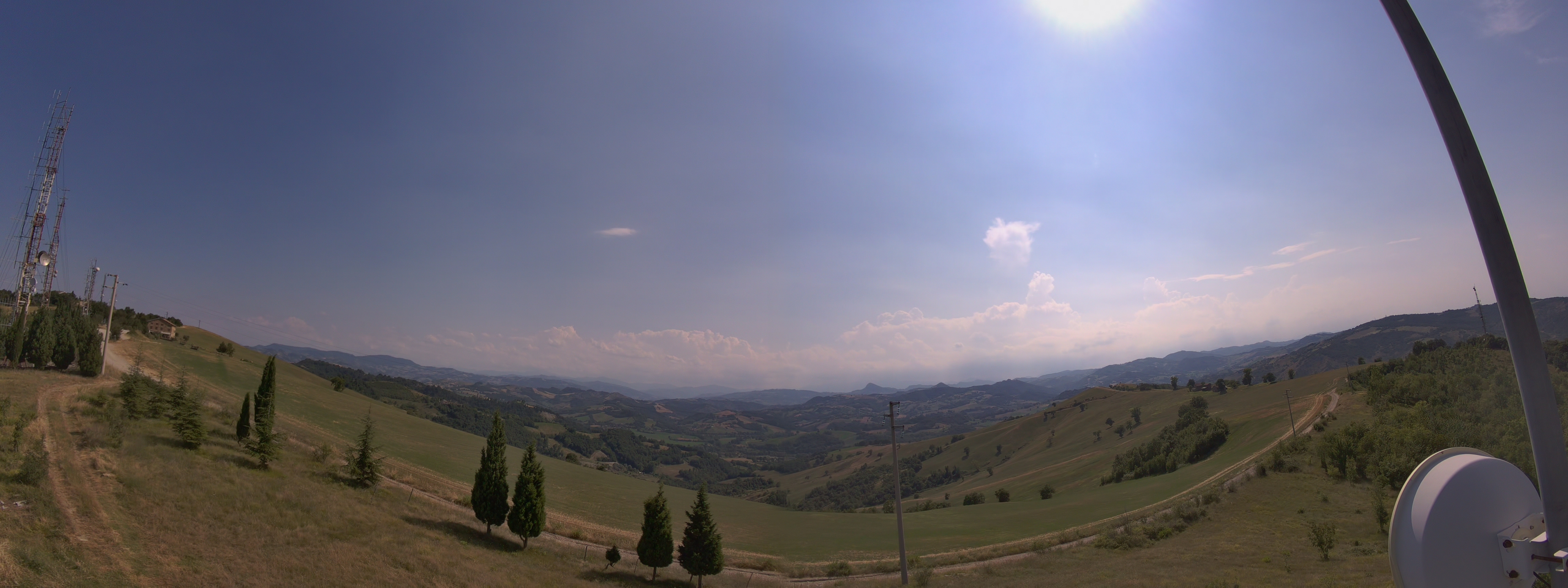 Sole incontrastato in Pianura dove i termometri arrivano a toccare i 34°C e potrebbero tornare a toccare i 35°C prima del tramonto a nord della via Emilia. L'umidità è ben presente, ma non su valori esagerati ed il suo aggravio sulle colonnine di mercurio è di circa una manciata di gradi percepiti.