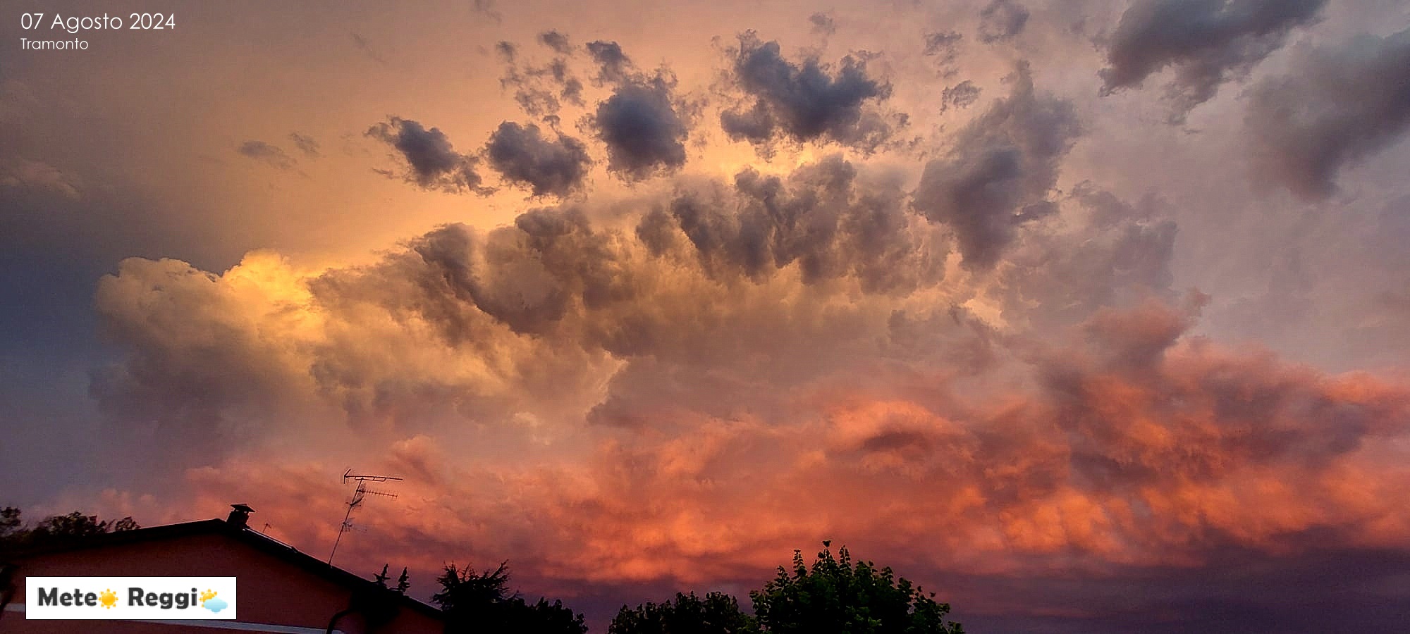 Alberi divelti, nuvole di polvere, chicchi di grandine grandi come palline da ping-pong, pioggia battete, crollo delle temperature e dopo pochi minuti di ordinaria follia ............ un tramonto eccezionale. Gli ultimi raggi di Sole della giornata hanno acceso di rosso i camini verticali e le incudini dei Cumulonembi in movimento verso il modense.