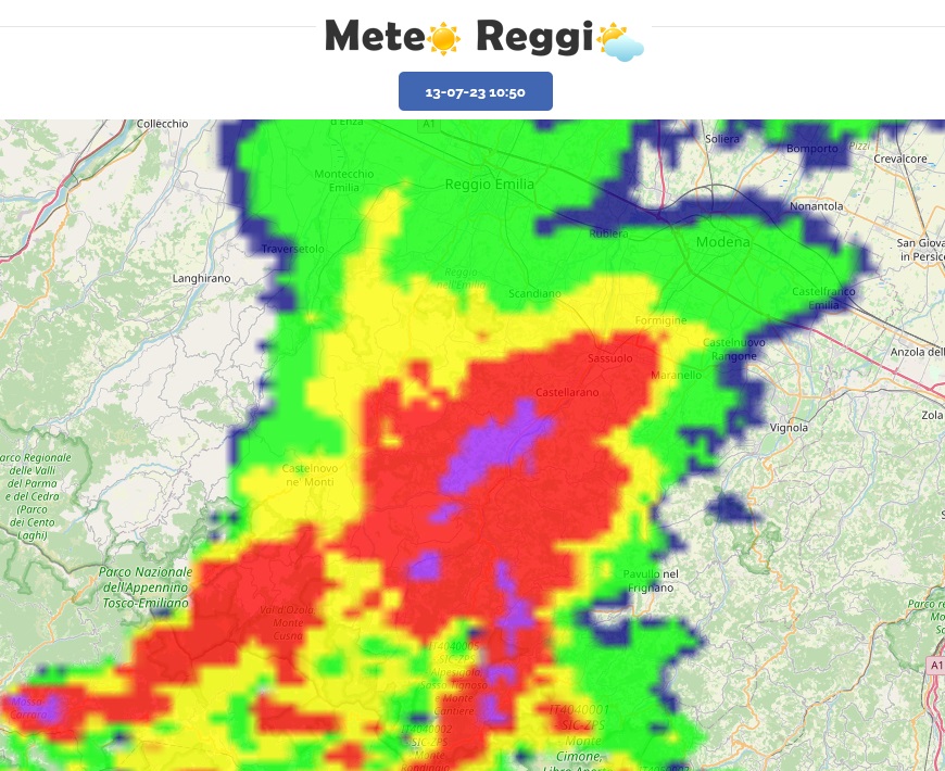Il sistema temporalesco sembra non volersi spingere in Pianura e resta asseragliato sull'Appennino. Qualche debole piovasco si è spinto fino alla Pedecollinare, ma nulla se paragonato all'acqua caduta sulla Collina reggiana.