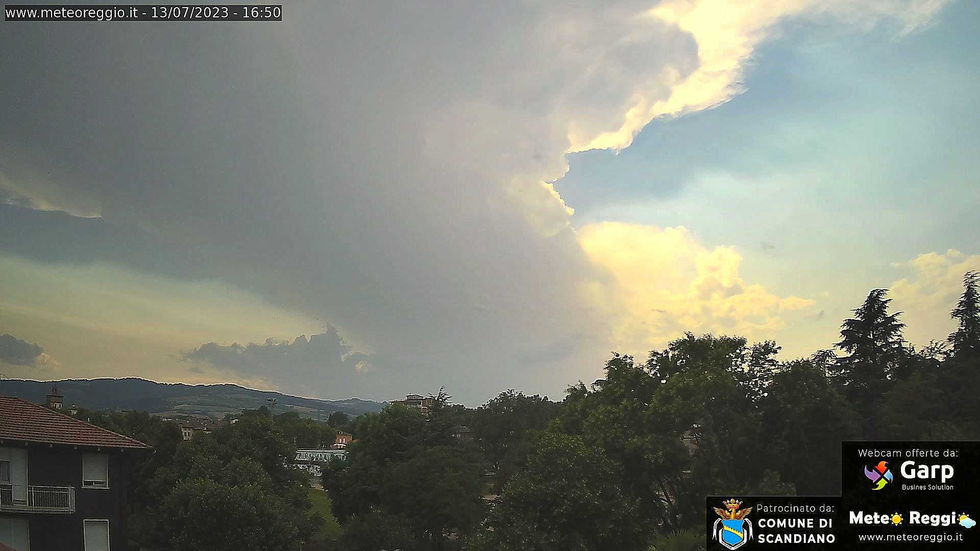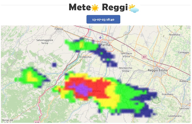 Dopo qualche ora di tranquillità il cielo è tornato a coprirsi su parte della Provincia per via della lunga incudine di un Cumulonembo che dal parmense si estende verso il reggiano. Un temporale isolati di discreta forza sta investendo la collina alle spalle di Parma, ma progressivamente si sta avvicinando all'Enza e nel breve periodo potrebbe valicarlo portando piogge e acquazzoni sulle zone di San Polo, Quattro Castella, Canossa, Selvapiana, Grassano e Quattro Castella. Possibili grandinate in corso nella zona di Langhirano (PR).