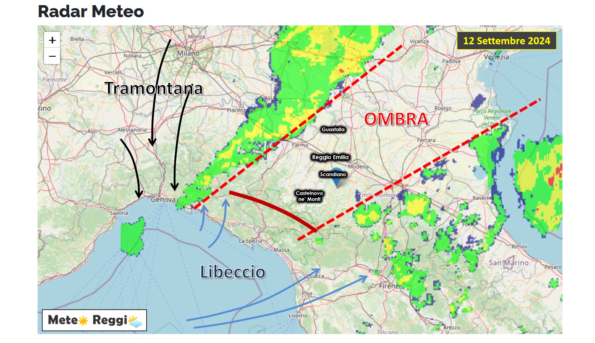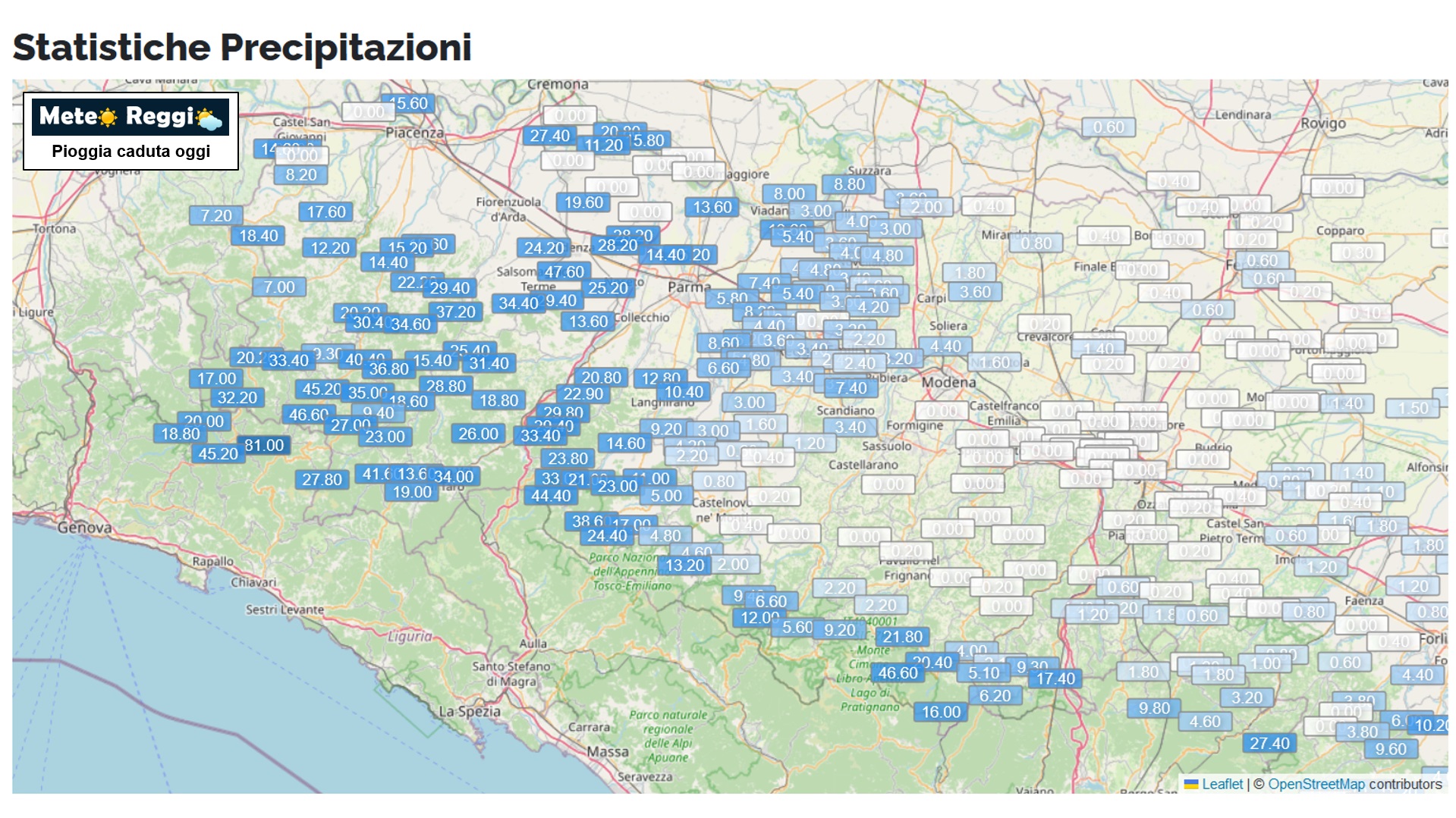 Noi come sempre siamo stati tranquilli all'ombra del gigante con qualche rovescio forte sul comprensorio ceramico all'ora di pranzo e piogge "di confine" lungo la valle dell'Enza.
