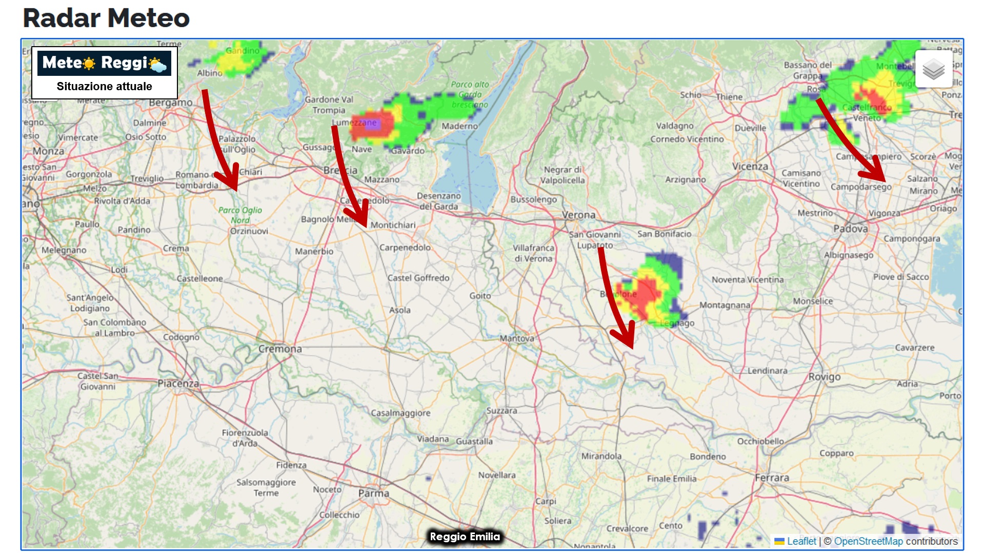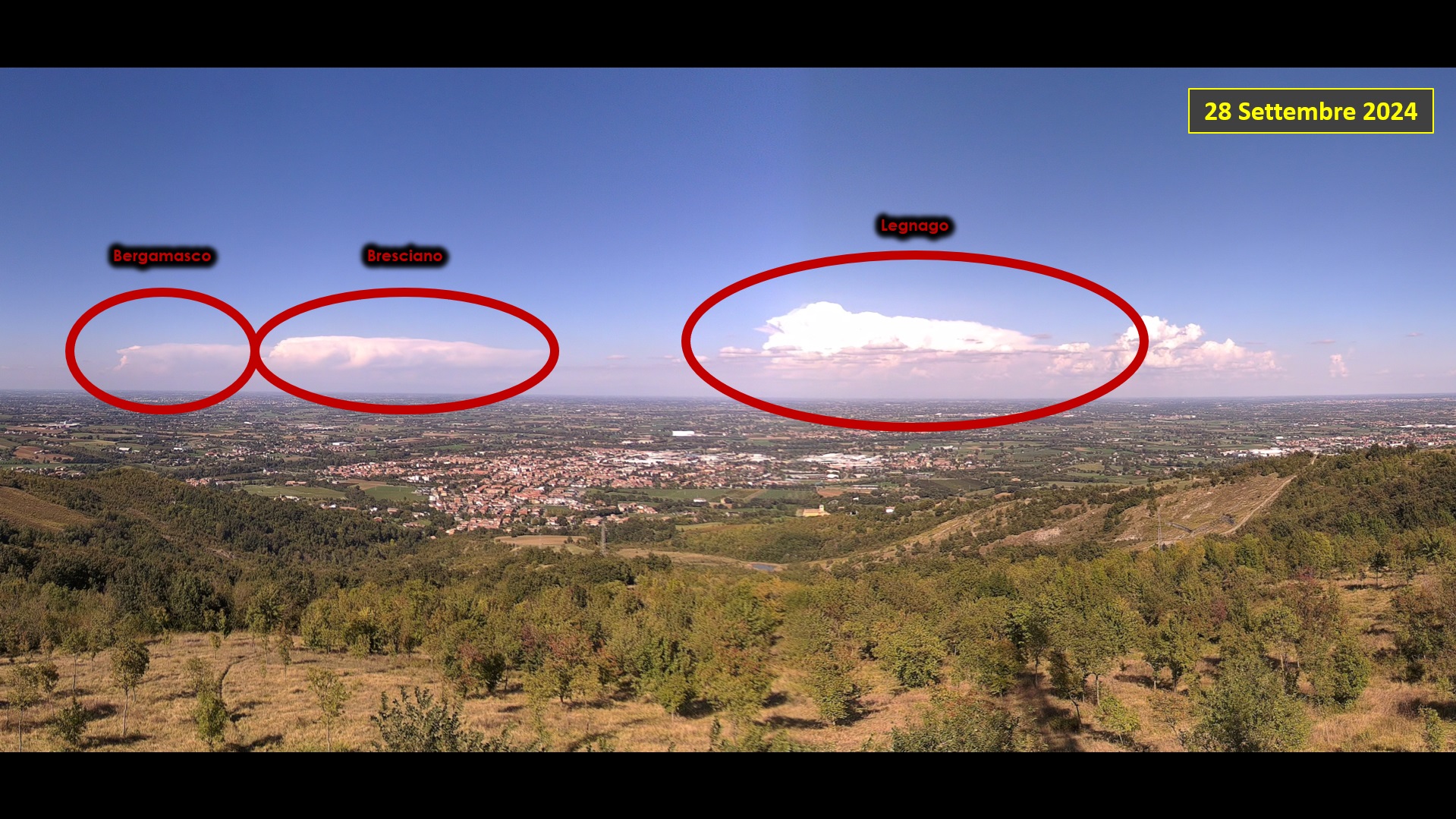 Il primo e più vistoso sulla destra si trova in territorio veronese ma destinato a non raggiungerci. Ora lo sguardo è rivolto verso i due più distanti tra bergamasco e bresciano che potrebbero crescere ulteriormente raggiungendo la calda Pianura.