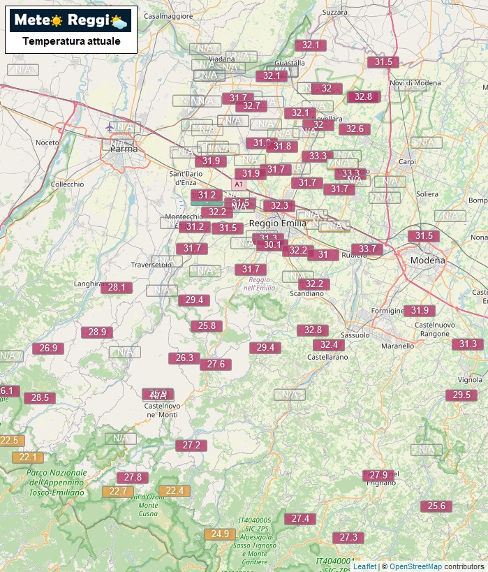 Si riparte con il caldo intenso di matrice africana, poche le nuvole in cielo e più che altro concentrate sull'alto Appennino. Il Sole non ha trovato grandi ostacoli in Pianura ed è stato libero di esprimersi con valori che hanno di nuovo varcato la soglia dei 33°C appesantiti dall'umidità.