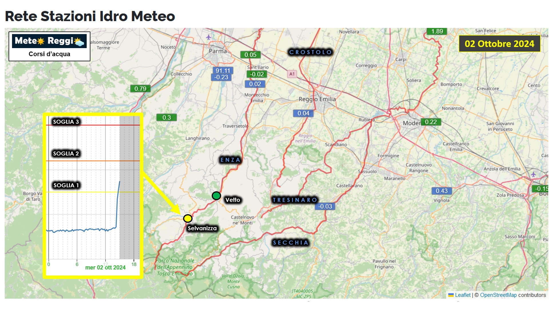 Anche in questa occasione è l'area dell'alta valle dell'Enza ad averne fatto le spese con accumuli piovosi che già adesso superano gli 85 mm, un quantitativo sufficiente a far innervosire il nostro torrente che ci separa dal parmense. In questi minuti, infatti, il livello idrometrico a Selvanizza sta superando soglia 1 e lo ha fatto in modo improvviso. Tutta l'acqua caduta nel bacino idrografico del torrente Cedra è arrivata alla sua foce nell'Enza.
