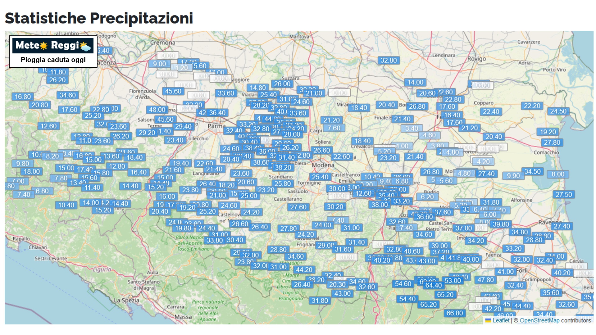 Ecco i dati dai pluviometri reggiani dalla mezzanotte ad ora: