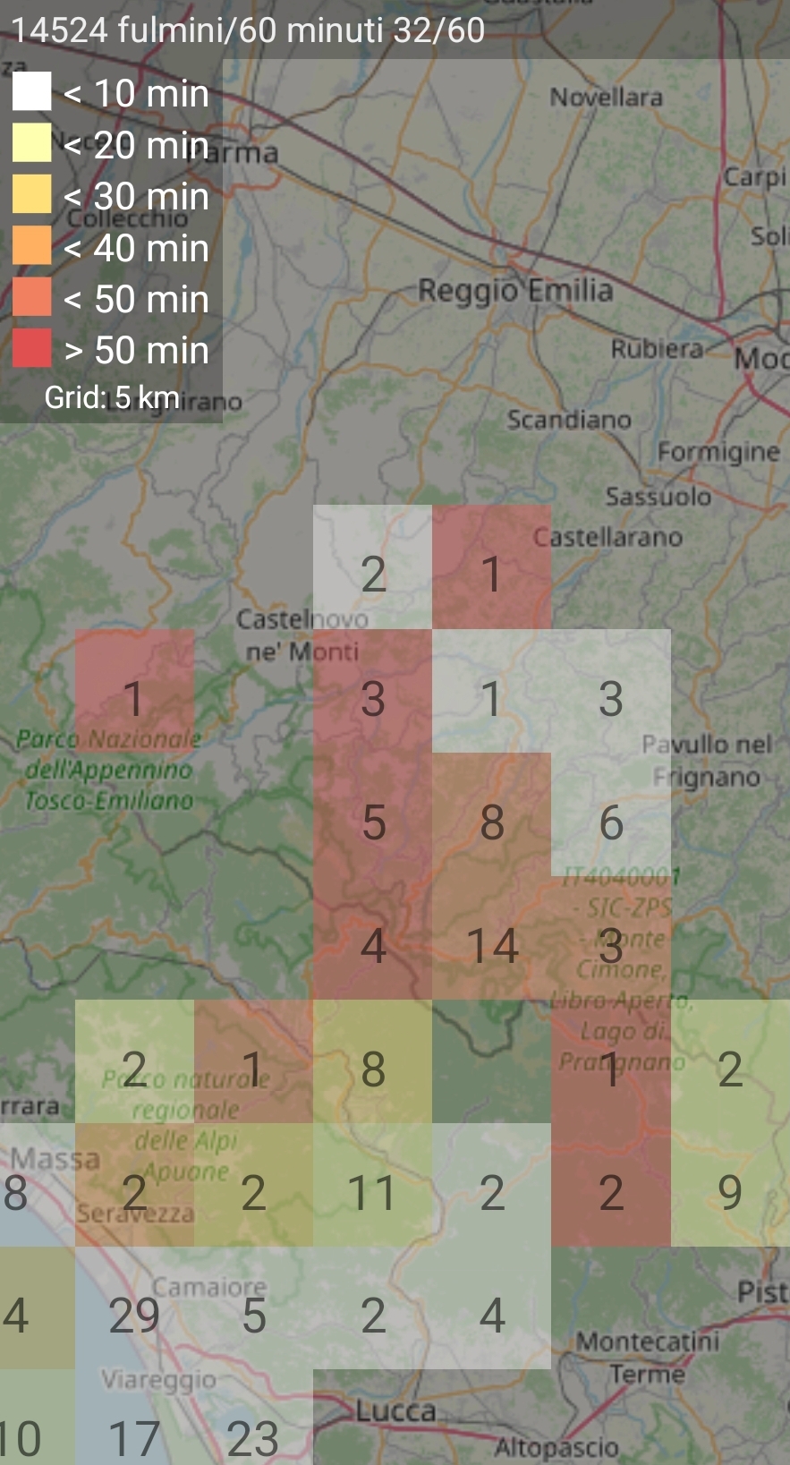 Piogge copiose stanno interessando la Pedecollinare e la Pianura. Resiste un po' di ombra tra la bassa montagna e l'alta collina alle spalle di Castelnovo ne' Monti.