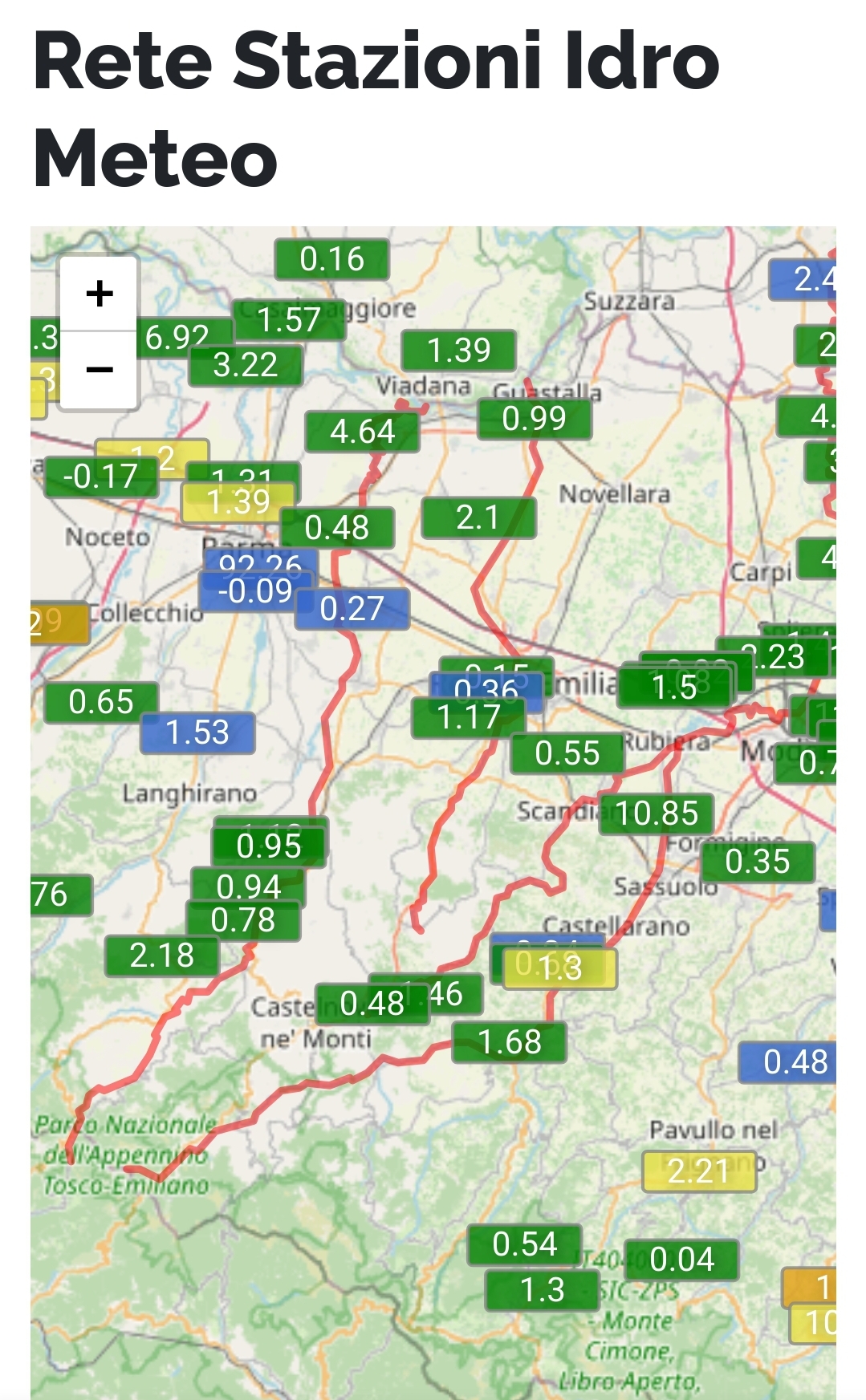Fiumi ancora sotto soglia 1 su tutto il reggiano, ma tutti in crescita fisiologica date le piogge. Attenzione a possibili allagamenti di cortili o sottopassi anche a nord della via Emilia. Le piogge continuano e continueranno anche durante la notte.