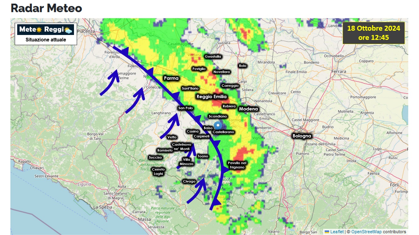 La linea temporalesca della tarda mattinata ha raggiunto Reggio Emilia e prosegue il suo percorso verso nord-est. Un evento breve ma pittusto intenso senza la presenza di grandine. Accumuli di circa 5 mm in Collina che salgono a 10/13 mm sulla Pedecollinare in poco più di mezz'ora.