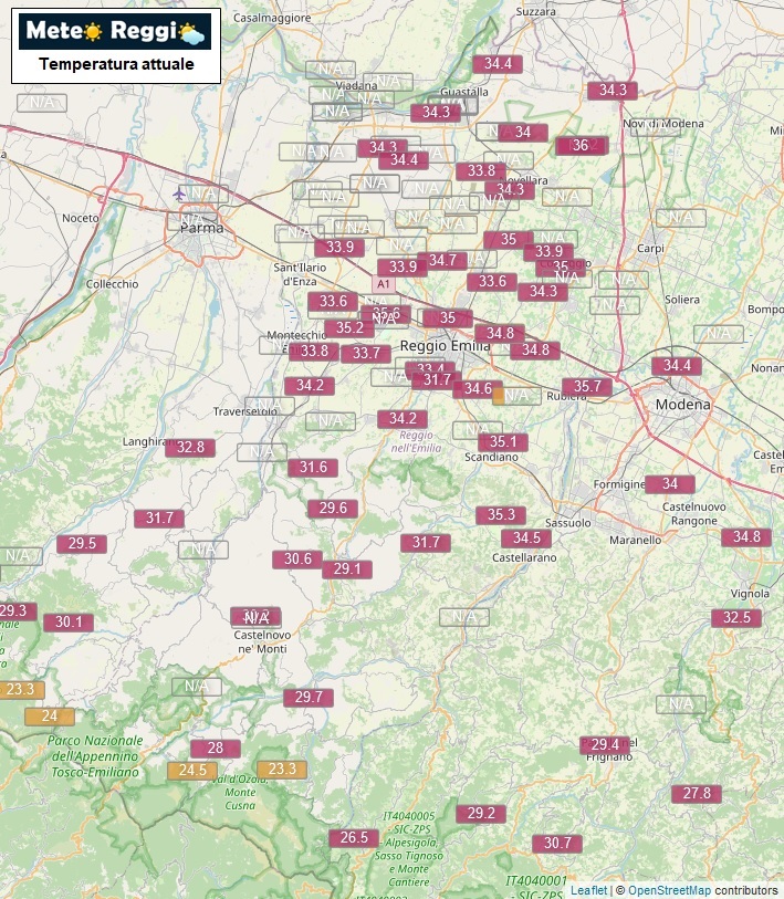 Gran caldo sulla nostra Provincia con un Sole libero di esprimersi per via dell'assenza delle nuvole. Le temperature percepite nelle zone di Pianura sommando l'umidità può superare i 40°C!