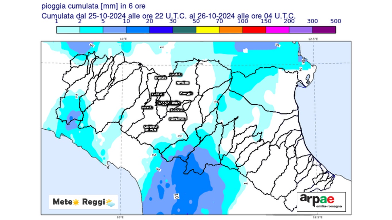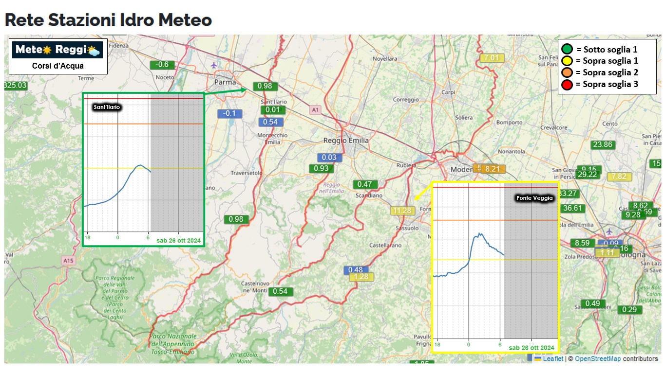 Dopo la mezzanotte le piogge sono calate fino a cessare un po' su tutto il reggiano, tuttavia qualche evento si è ancora manifestato sull'appennino modenese ed il ruscellamento delle piogge serali hanno portato ad un innalzamento momentaneo del fiume Secchia che ha superato (e supera tutt'ora) soglia 1 tra Ponte Veggia a confine con Sassuolo e l'affluente Rossenna tra Lugo e Prignano sulla Secchia.