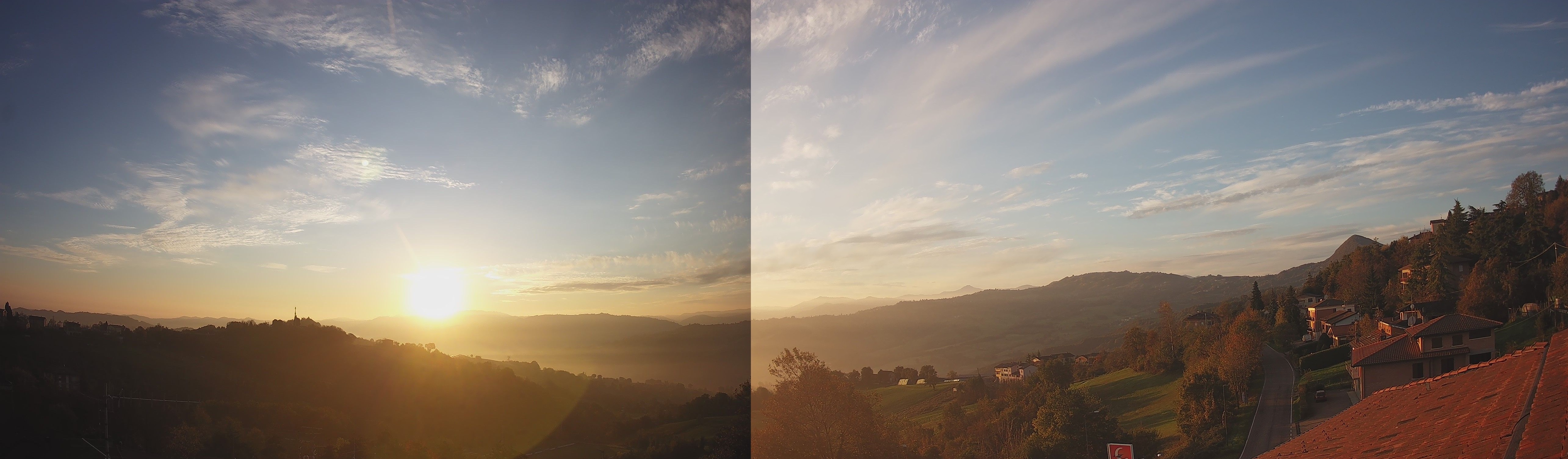 Ancora un'alba di alta pressione sul reggiano, un'alba che regala splendidi colori a sud della via Emilia, ma nebbie e grigiore a nord di essa.