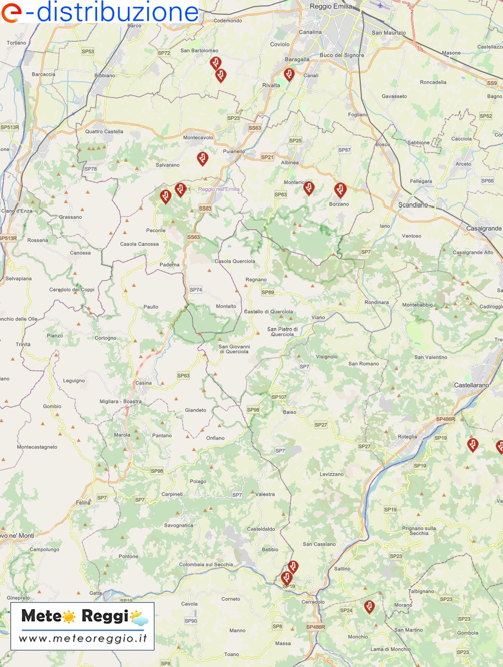 Molti alberi caduti hanno causato anche interruzioni nella distribuzione della corrente elettrica, specie sulla fascia Pedecollinare.