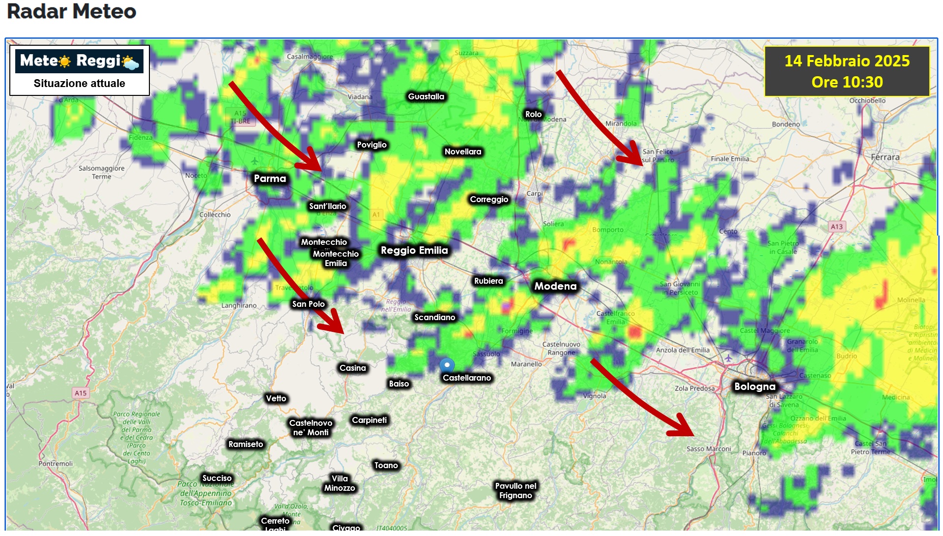 Infine segnaliamo un po' di attività temporalesca sulla Pedecollinare tra Puianello e Albinea dove si sono uditi tuoni, chiaro segnale che qualcosa sta "vorticosamente" cambiando sulle nostre teste.