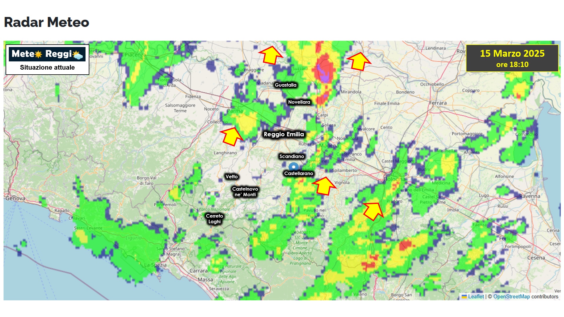 Ora abbiamo un po' di pace, con un cielo solcato da nuvole grige e minacciose in rapido passaggio, ma senza sistemi o nuclei minacciosi. Abbiamo una fascia di pioggie lungo tutta la valle del Secchia, mentre un altra piccola goccia instabile arriva dal parmense sulla zona di Poviglio, Lentigione, Brescello.