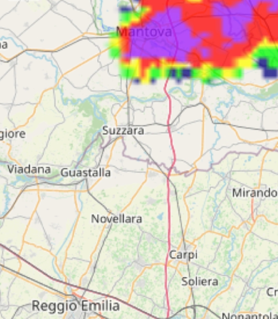 Il sistema si sposta velocemente verso sud-est in direzione Pianura modenese e parrebbe schivare di un nulla la nostra provincia.