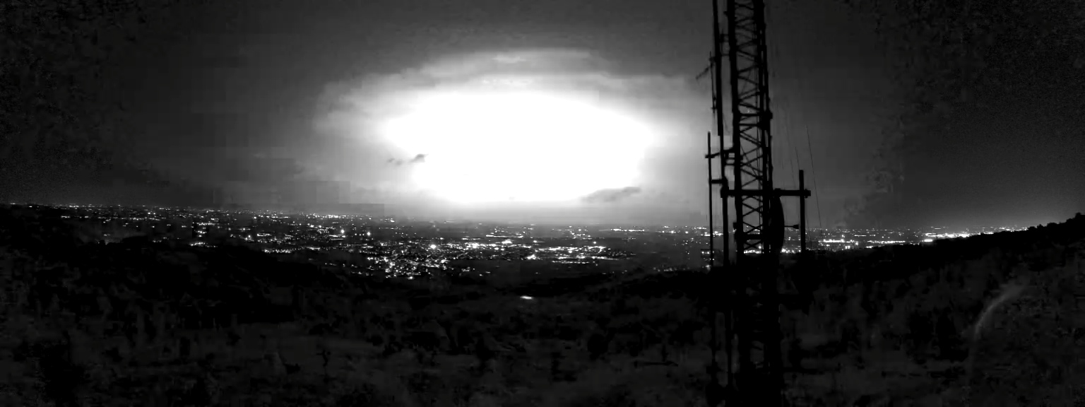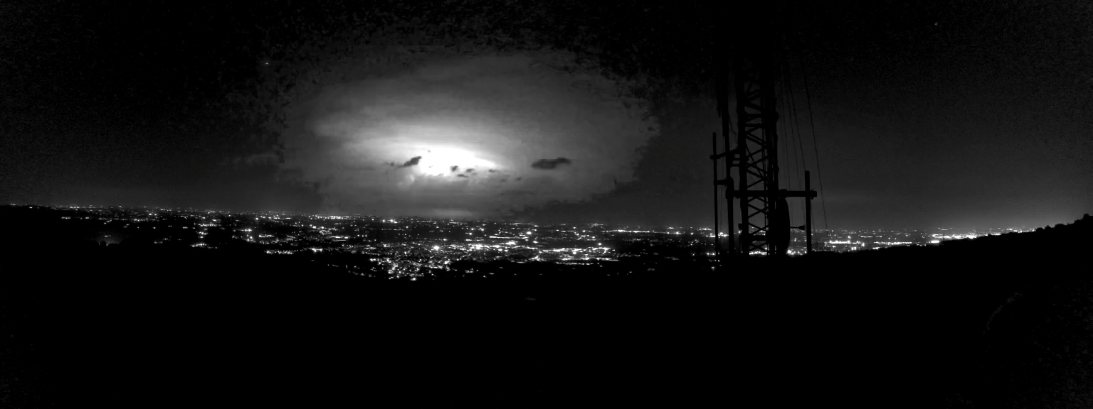 Numerosissimi lampi illuminano il cielo della Pianura. Frutto di una forte cella temporalesca che si sta abbattendo oltre il Po in provincia di Mantova e sulla città stessa.