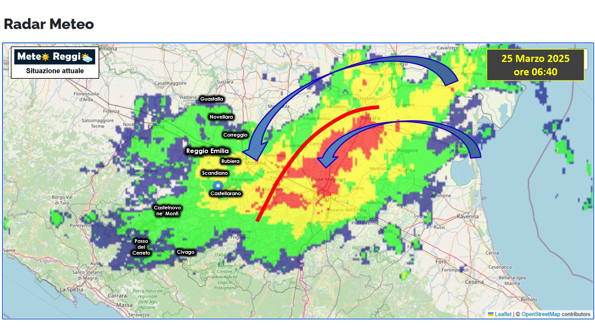 Nottata molto meno tranquilla rispetto a quanto ci aspettavamo e anche la prima parte della mattina è molto più ostile rispetto le nostre previsioni. Siamo alle prese con una ritornate da est molto più spostata ad occidente e questo fa sì che le piogge dal modenese sconfinino fino al reggiano e non ci risparmino come pensavamo fino a ieri.