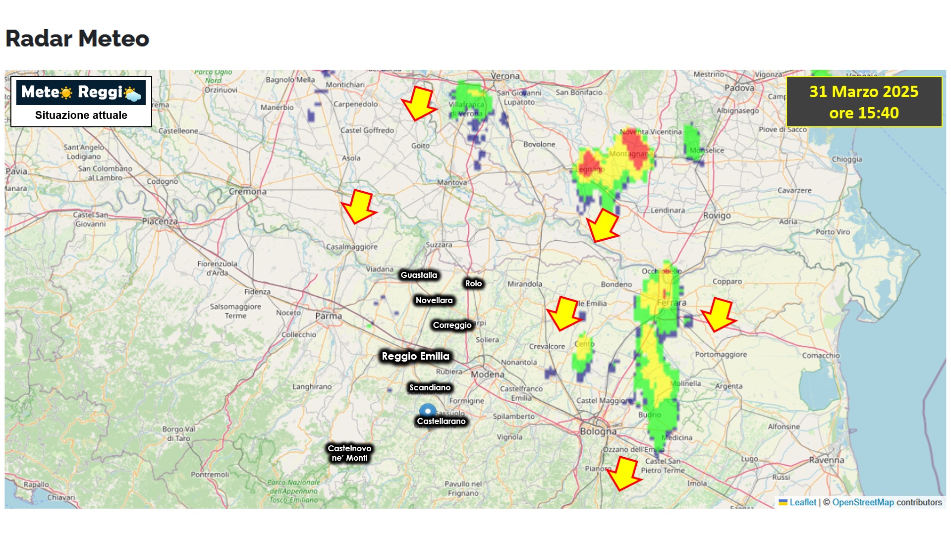Tutto piuttosto tranquillo sulla nostra provincia, il cielo progressivamente ha visto un aumento della nuvolosità come da attese. Attenzione, però, alla discesa di celle temporalesche dal Veneto che a gran velocità si stanno portando in Emilia. Abbiamo degli ingressi tra ferrarese, bolognese e modenese, ma una nuova cella è in formazione tra veronese e mantovano con potenziale avvicinamento al reggiano.