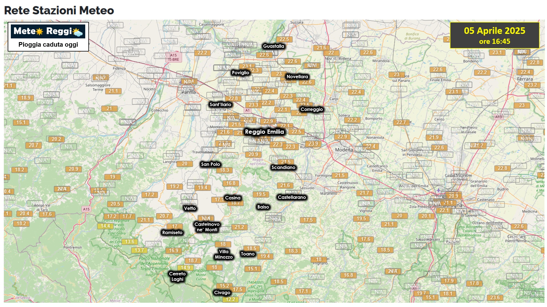 Ecco cosa ci dicono i termometri reggiani in questi minuti: