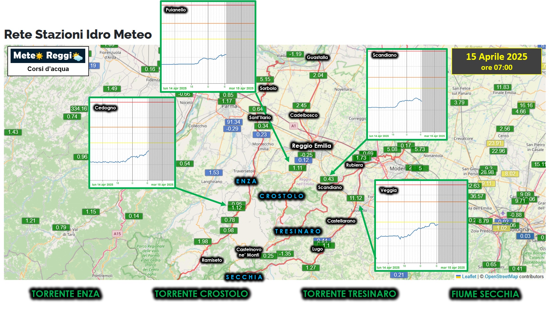 Nulla di minaccioso, i colmi di piena sono rimasti sotto soglia 1 sebbene di poco sull'Enza ed il Secchia. E' sull'Enza, però, che abbiamo ancora le curve in crescita, mentre il Secchia vede il colmo già alle Casse di Espansione di Rubiera.