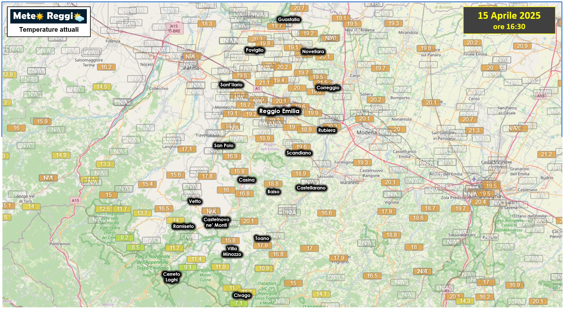 15,9°C a Castelnovo ne' Monti