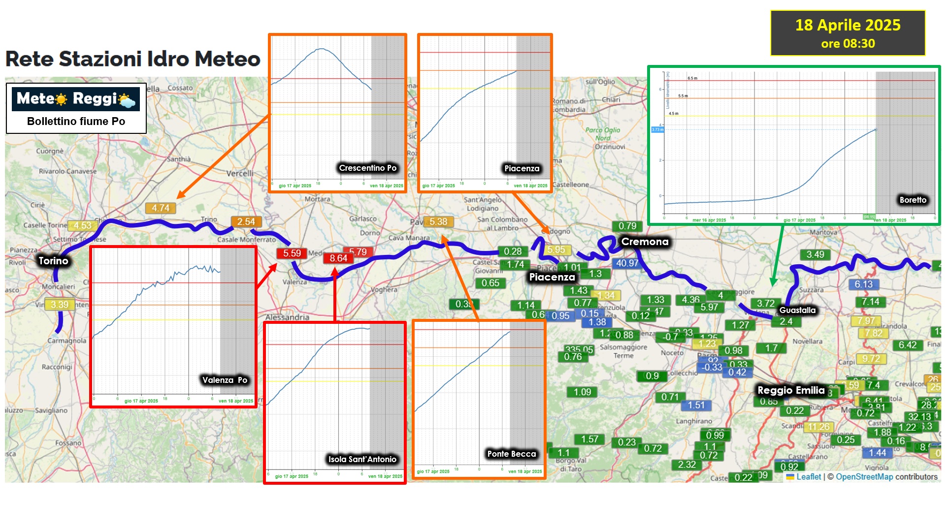 I livelli del Grande Fiume iniziano a calare in Piemonte e questa è un'ottima notizia. Attualmente il colmo della piena ha raggiunto "Isola Sant'Antonio" tra Voghera e Valenza. In questi minuti raggiungeremo soglia 3 anche alla stazione successiva di "Ponte Becca" alla periferia di Pavia, l'ultima prima dell'Emilia-Romagna.
