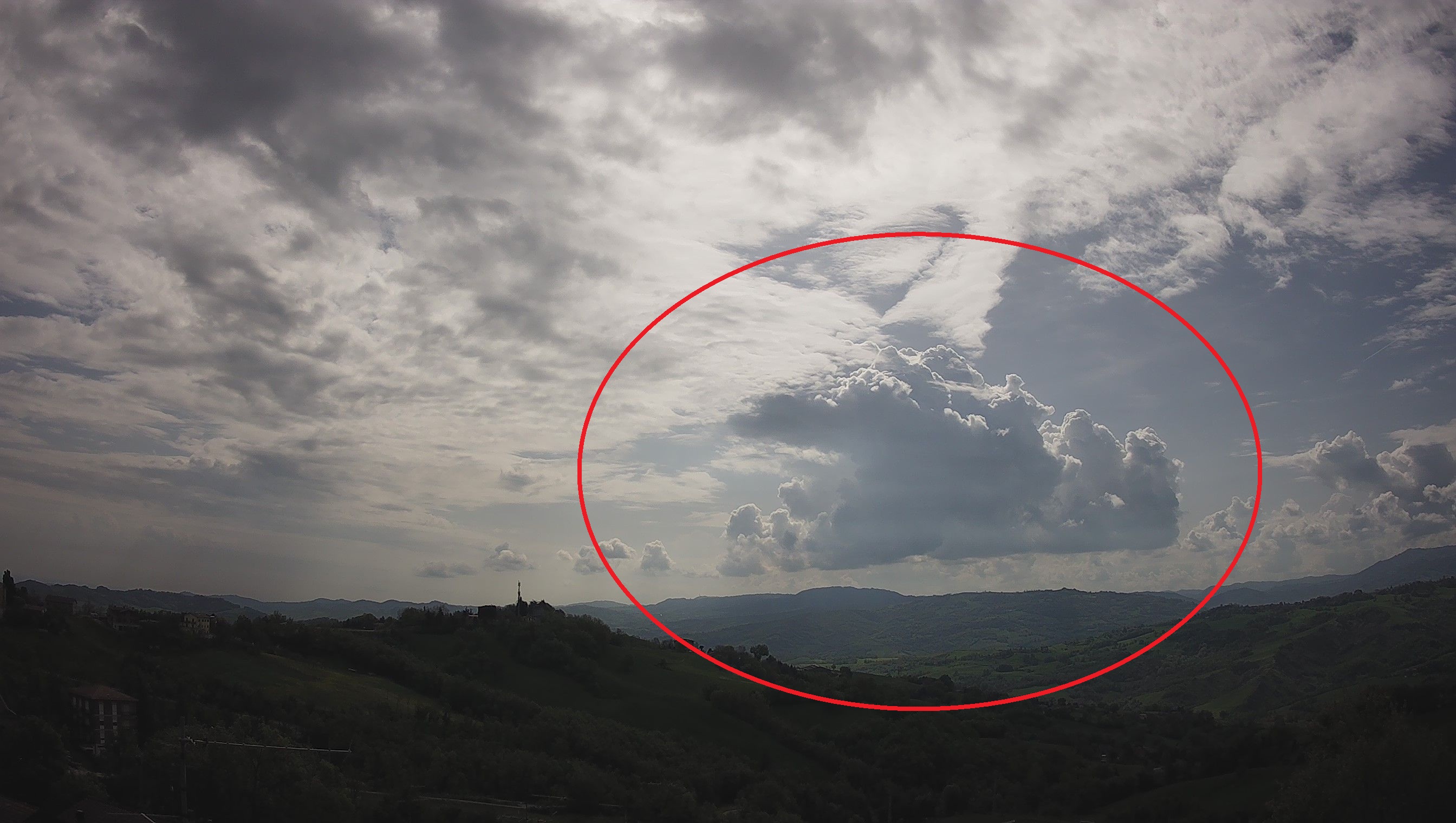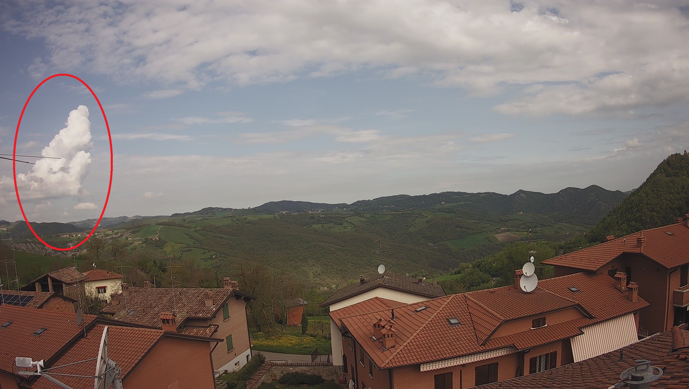 Siamo ancora a metà mattinata, ma in Appennino già vediamo degli alti pennacchi di nuvole cumuliforme pronte a fiorire ed evolvere in una vera e propria linea temporalesca.