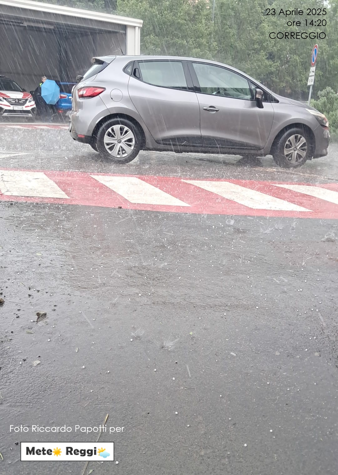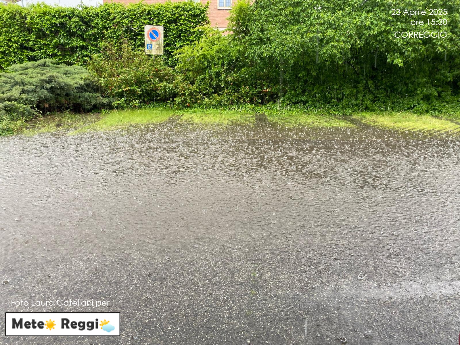 Il vasto sistema temporalesco che ha imperversato nella periferia nord-orientale di Reggio Emilia sta liberando il cielo su Correggio, vero epicentro di questo nubifragio che ha portato purtroppo anche un po' di grandine sulla Città. La cella ha ristagnato per almeno un'oretta per poi proseguire il suo cammino verso est.